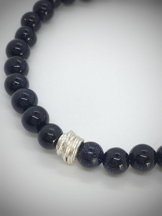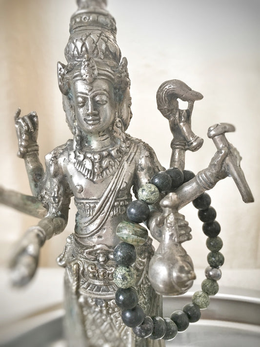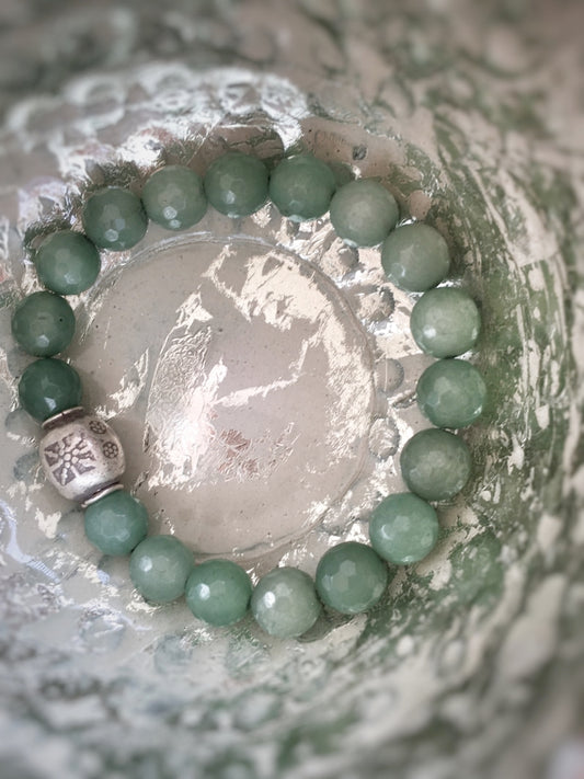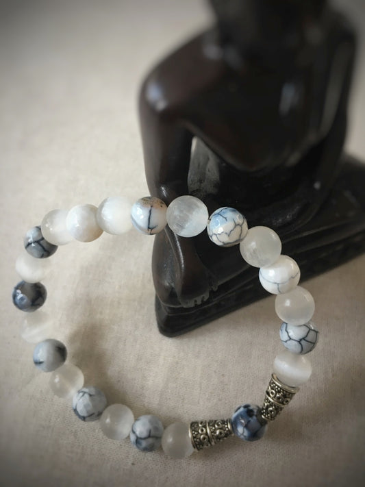 A142 - Selenit (Katzenauge) mit Metall-Zierperlen
