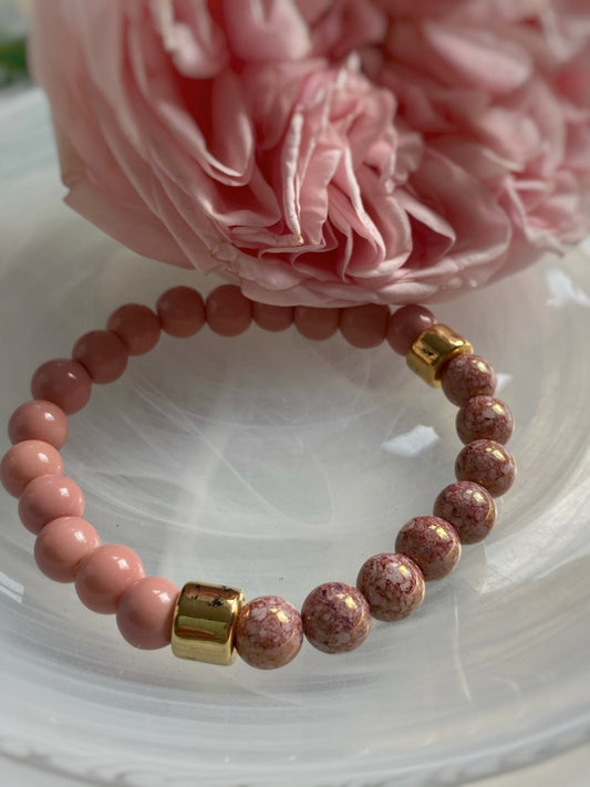 A367 - Kristallglas mit Rosa Aventurin und Muschelperlen