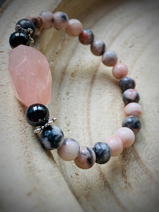 A465 - Roter Bänderachat mit Lampwork-Perle
