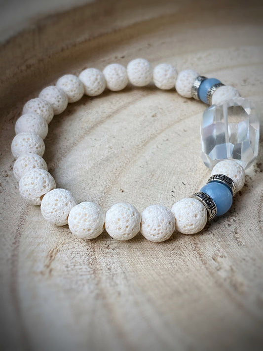 A425 - Weiße Lava mit Aquamarin und Bergkristall