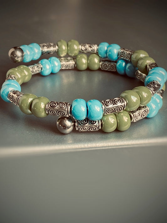 A108 - Teal Jade mit afghanischen Glasperlen