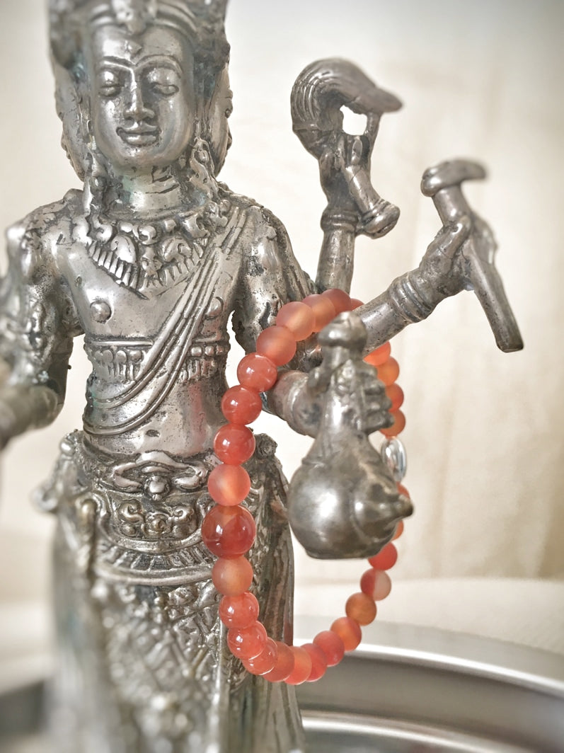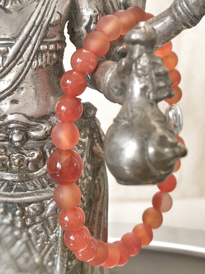 Perlen: Karneol, matt und glanz, 6mm mit ovaler Echt-Silber-Kaschierperle