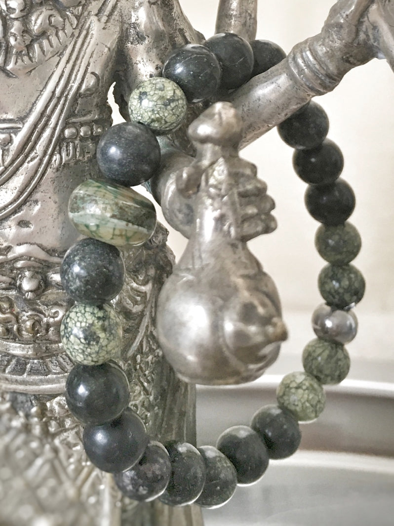 Perlen: Russischer Serpentin, 8mm, Jaspis und tibetische Achat-Perle
