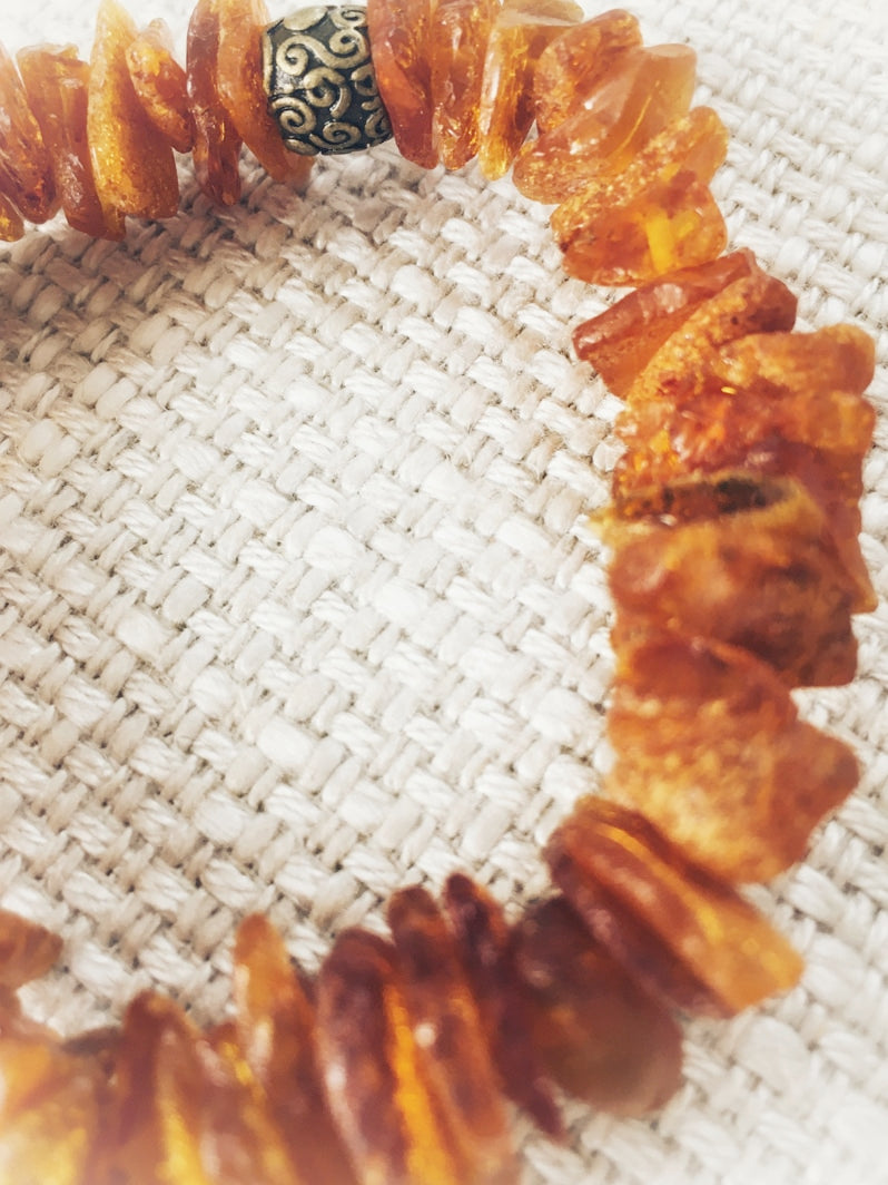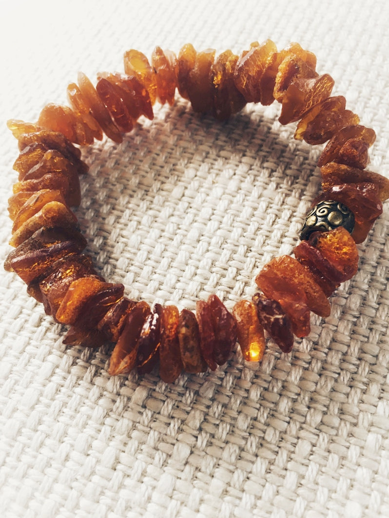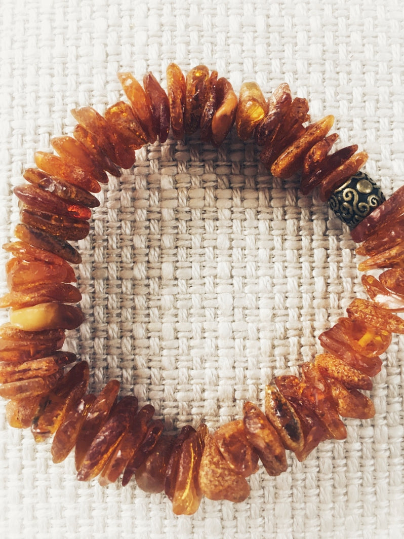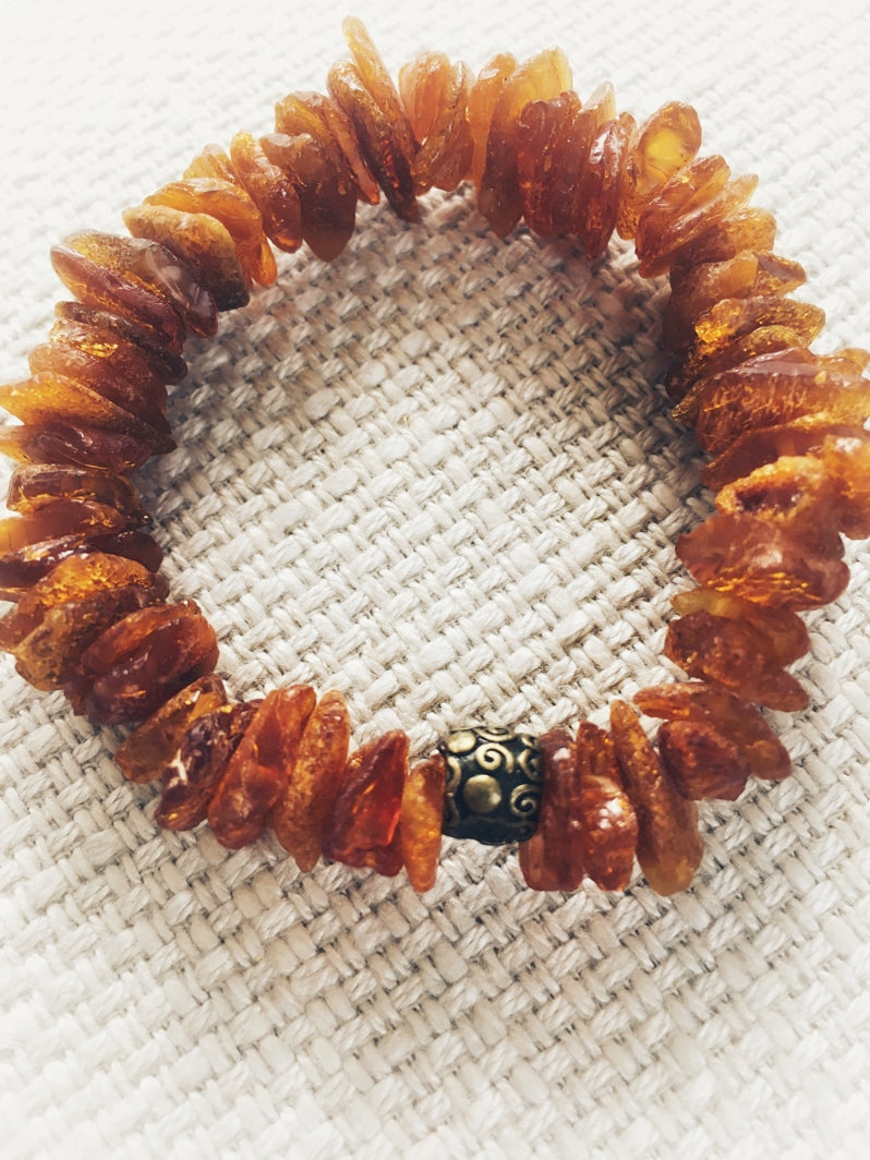 Perlen: Bernsteinsplitter mit messingfarbener Metall-Kaschierperle