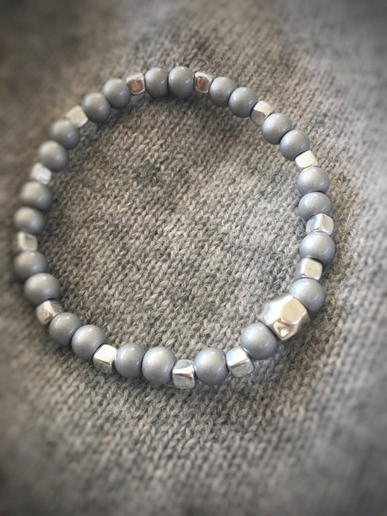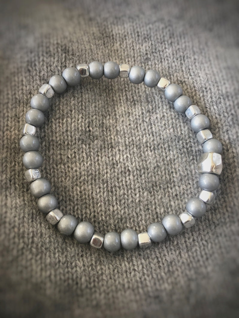 Perlen: Matte Glasperlen und silberfarbene böhmische Glasperlen mit silberfarbener Metall-Kaschierperle