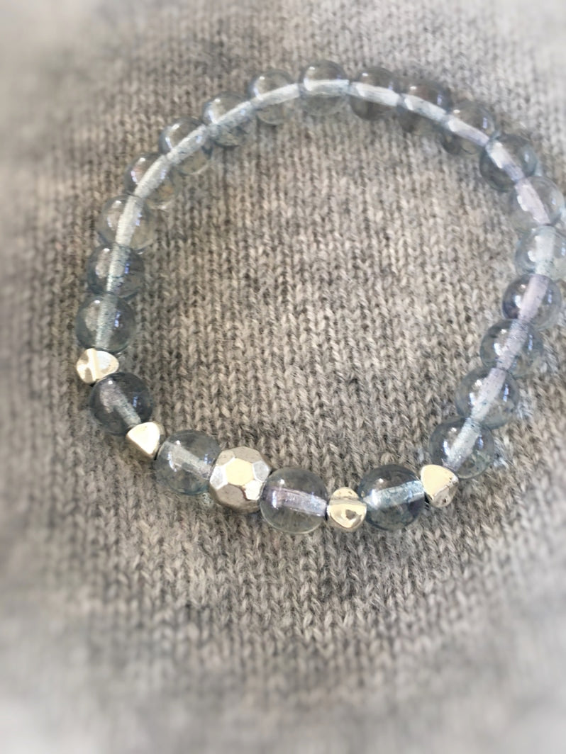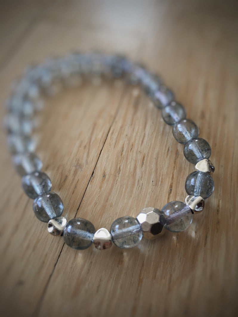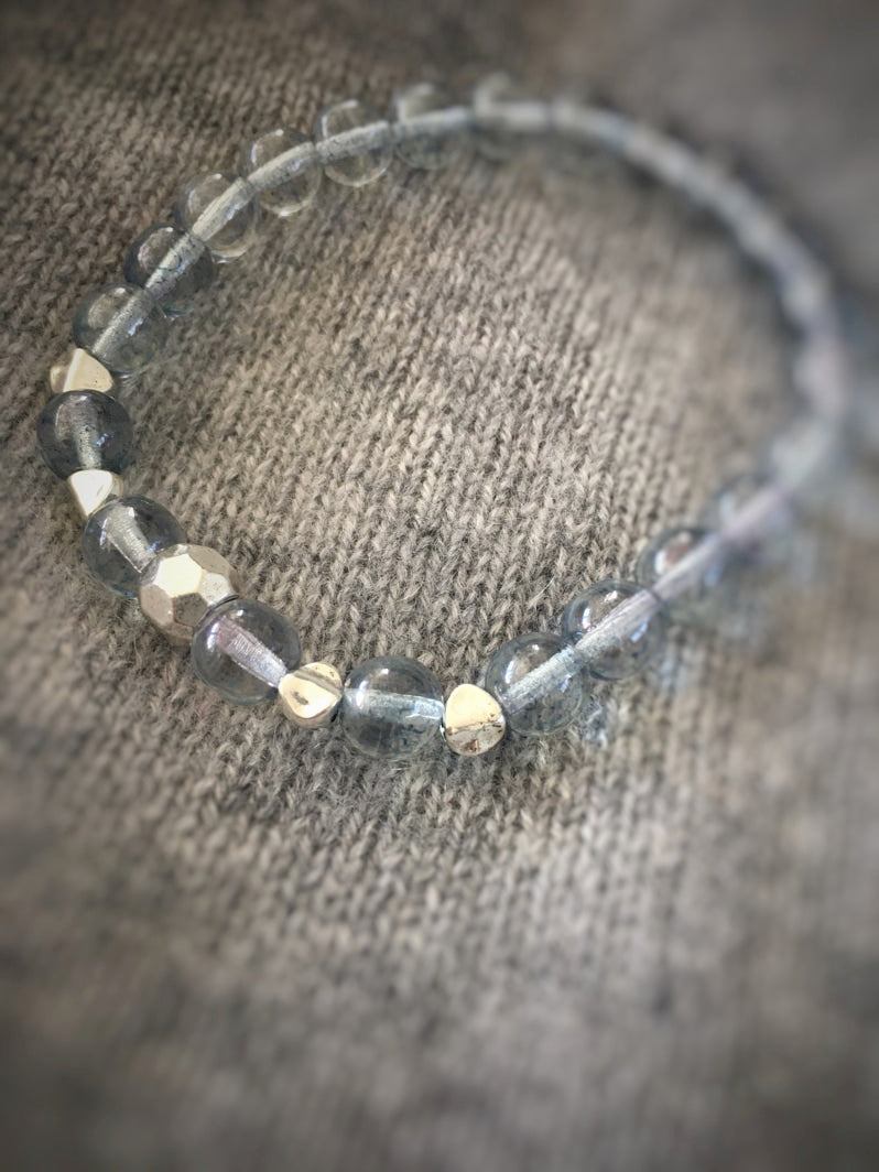 Perlen: Matte Glasperlen und silberfarbene böhmische Glasperlen mit silberfarbener Metall-Kaschierperle