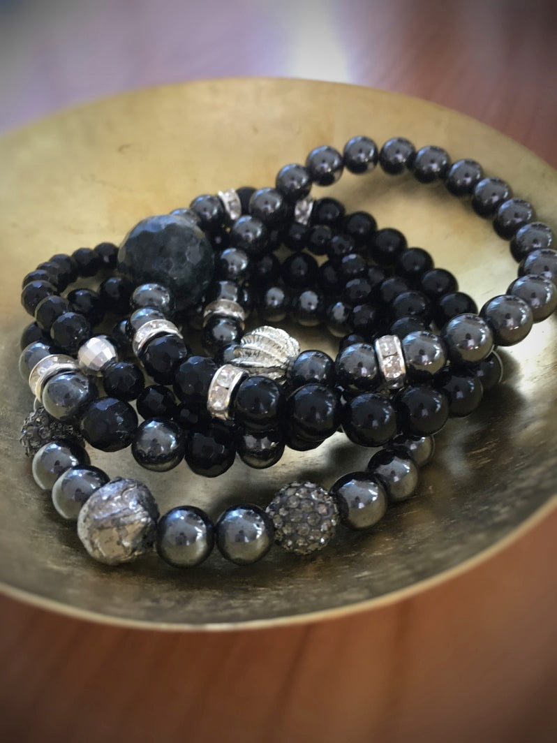 Perlen: Onyx facettiert, 6mm und versilberte facettierte Kaschierperle