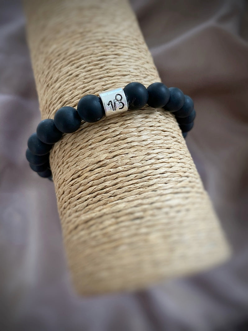 Perlen: Matter Onyx, 8mm und silberfarbene Metall-Kaschierperle mit Zodiac-Zeichen Steinbock/Capricorn (22. Dezember - 19. Januar)
