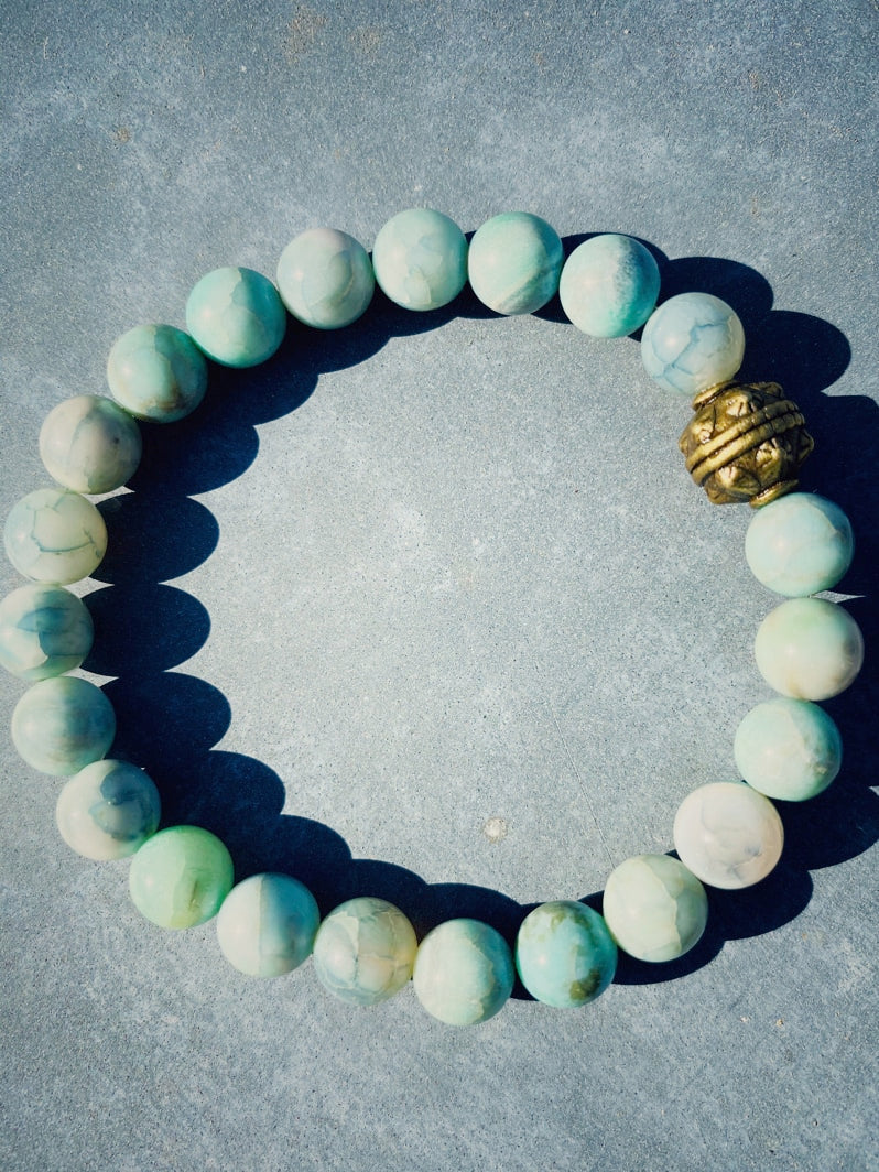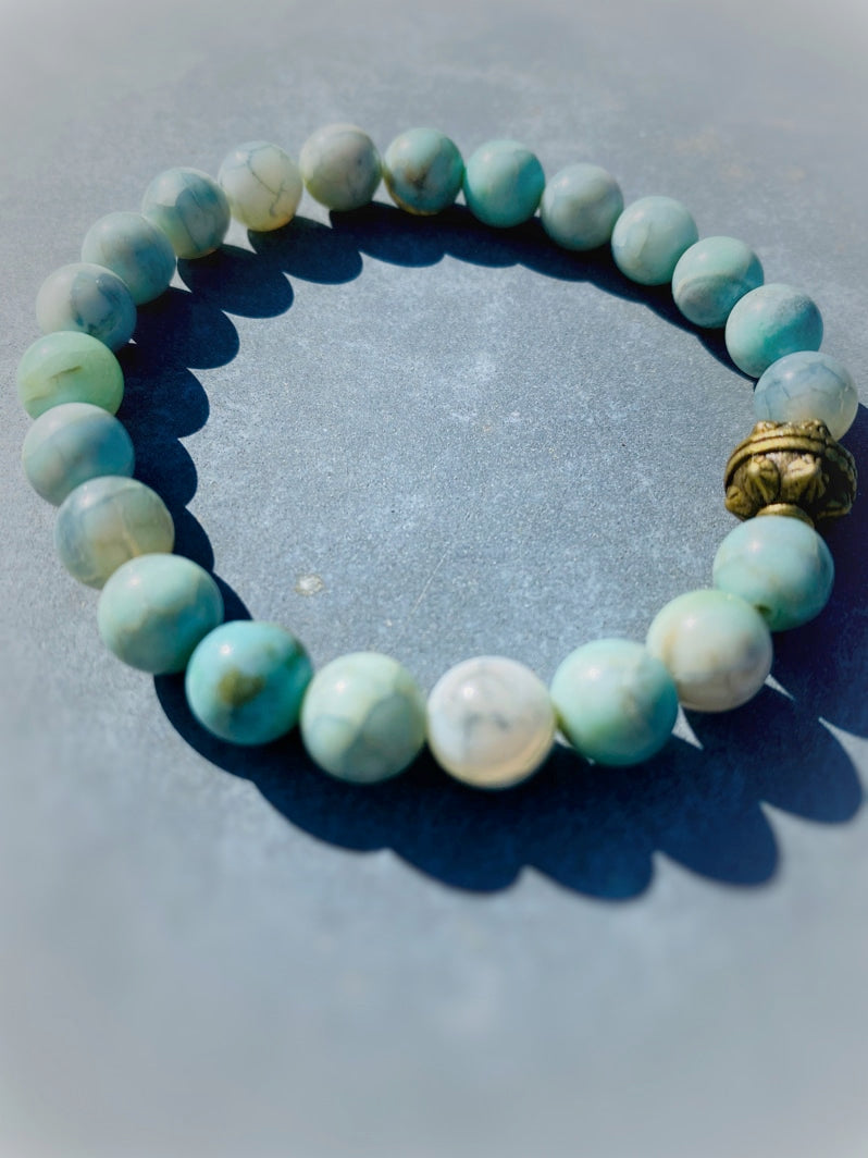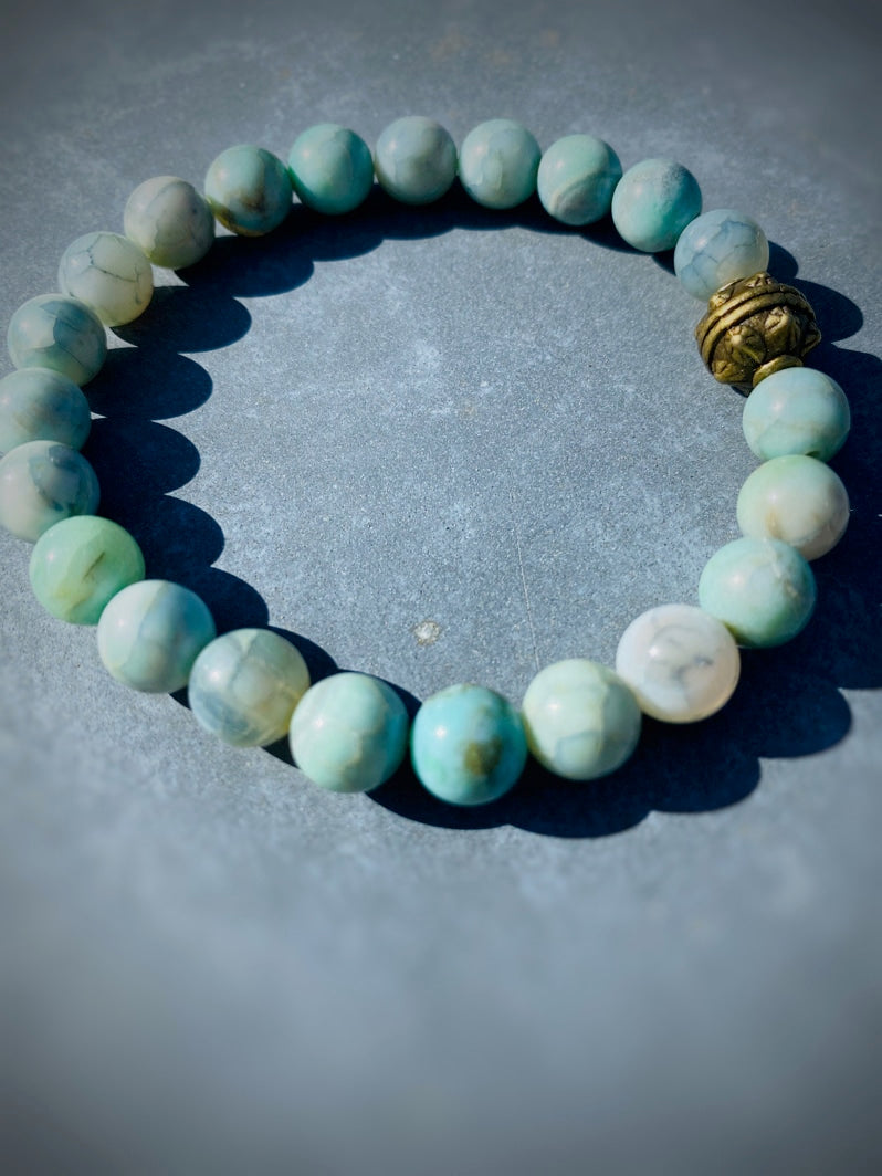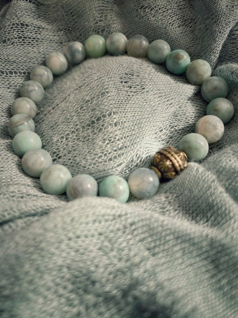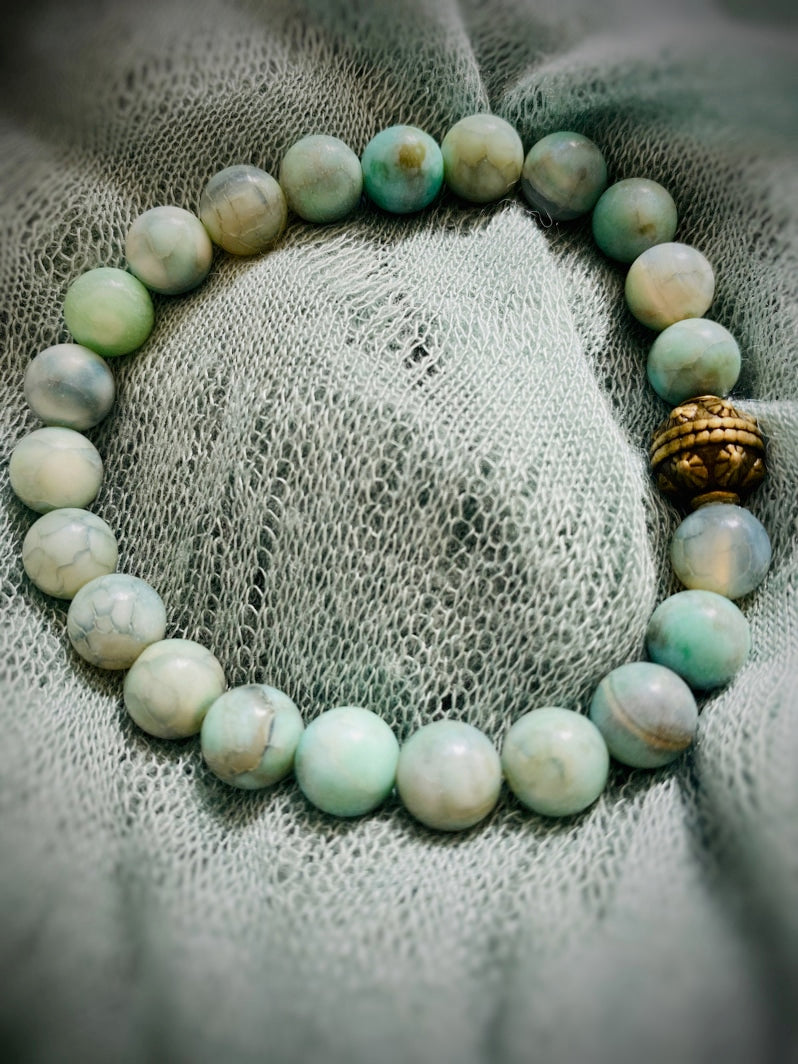 Perlen: Hellgrüner Feuerachat 8mm, Messing-Kaschierperle