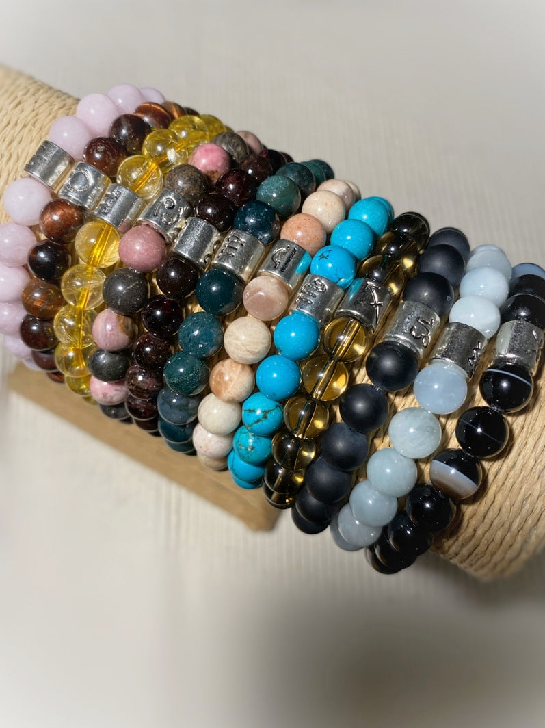 Perlen: Rauchquarz, 8mm und silberfarbene Metall-Kaschierperle mit Zodiac-Zeichen Schütze/Sagittarius (23. November -21. Dezember)