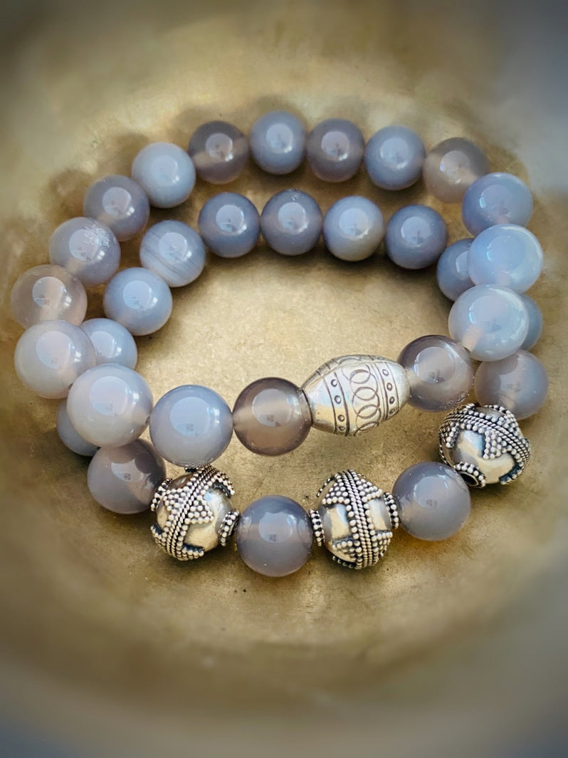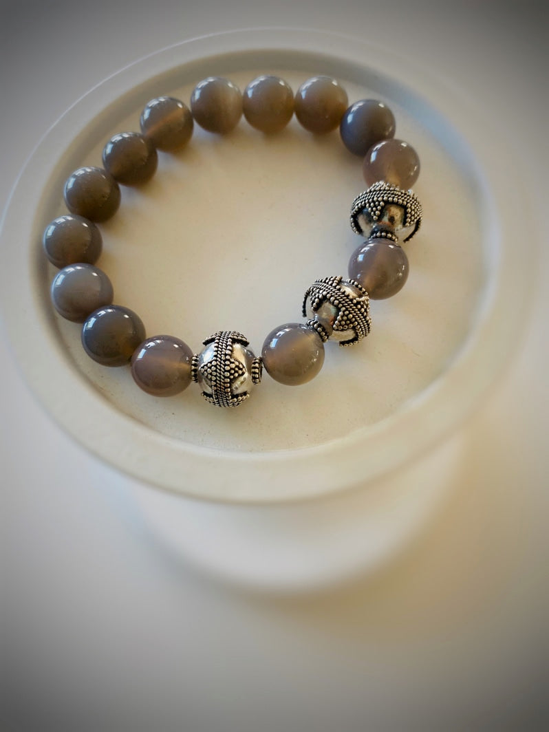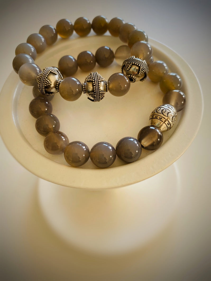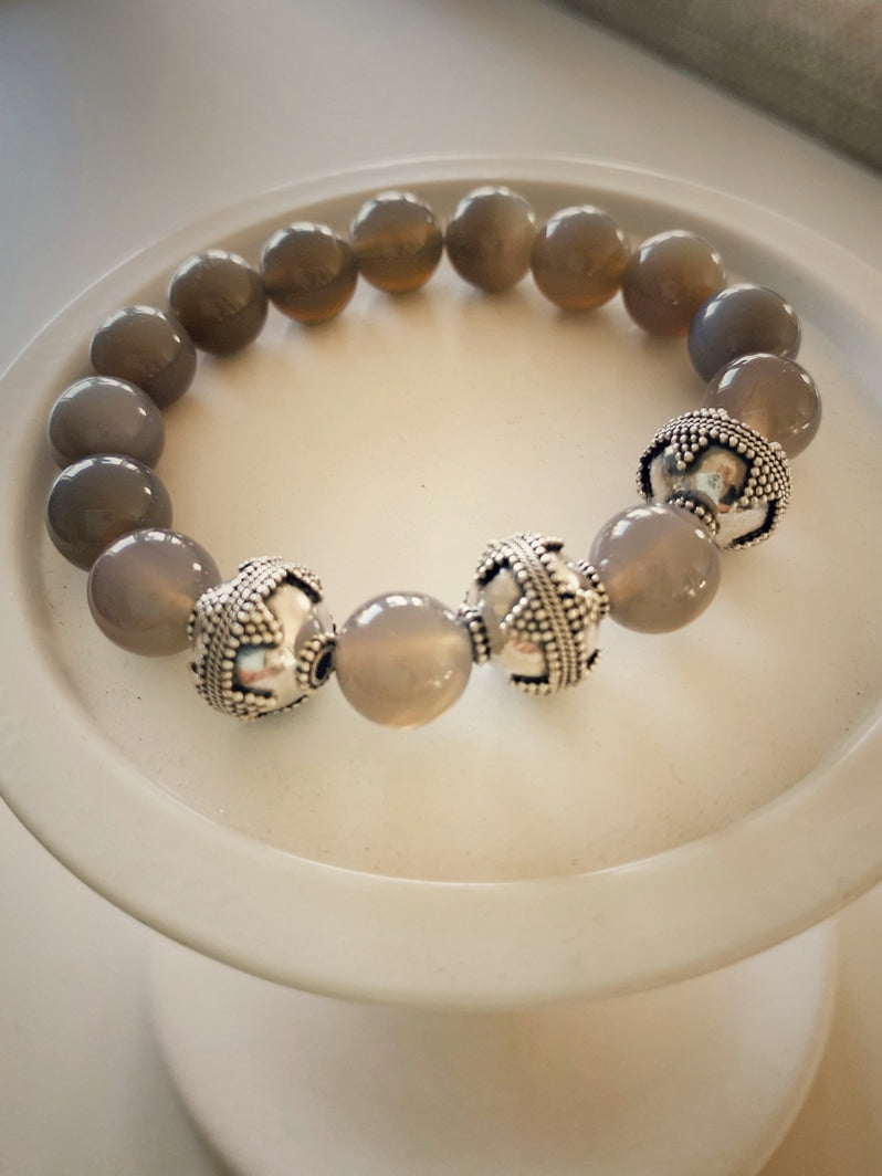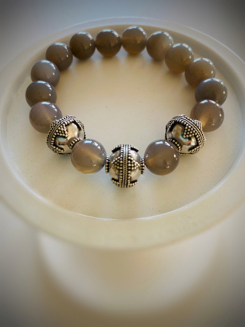 Perlen: Grauachat 10mm und Bali-Silber-Perlen