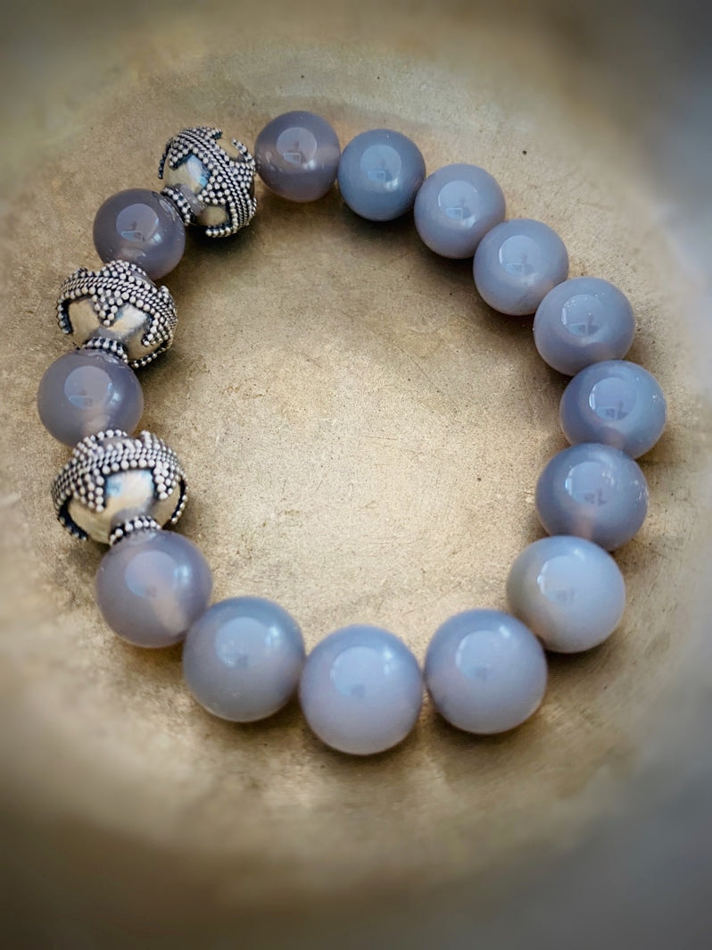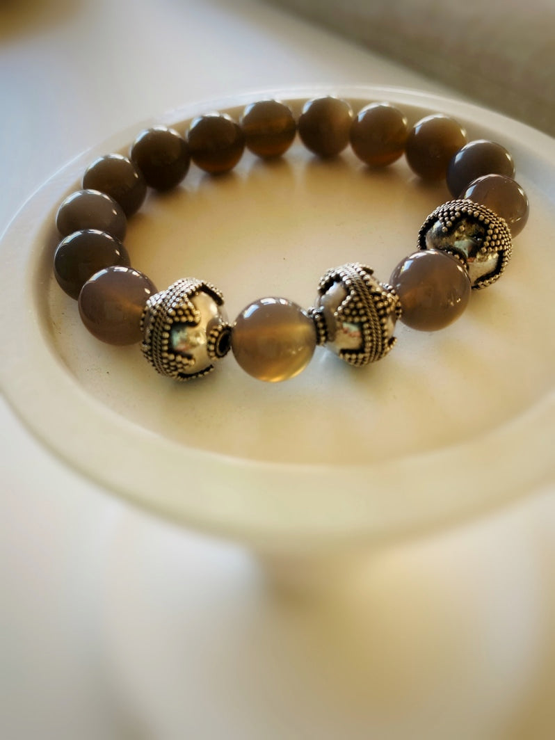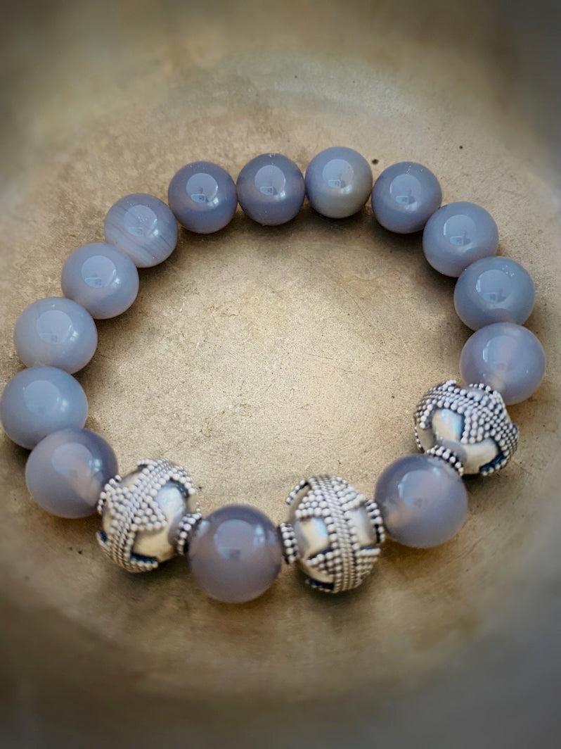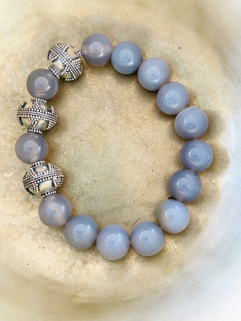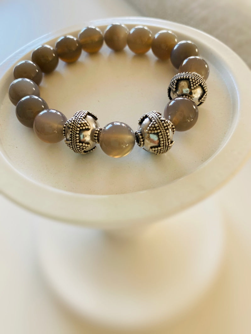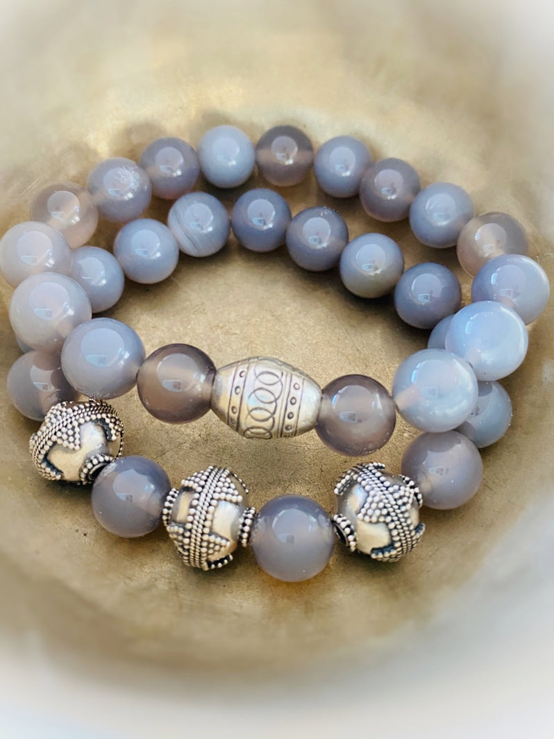 Perlen: Grauachat 10mm und Bali-Silber-Perlen
