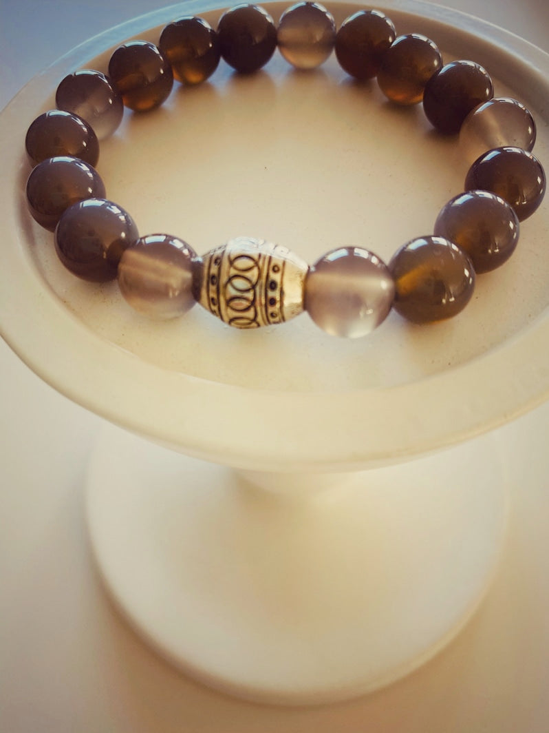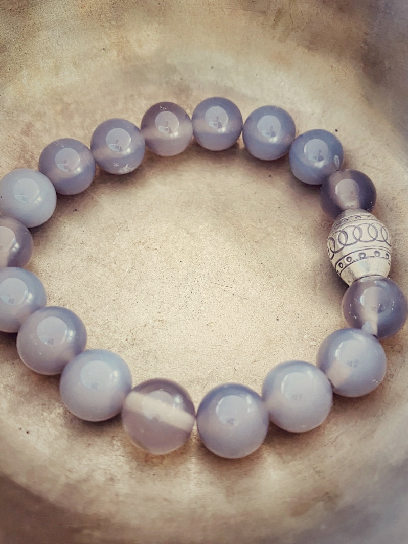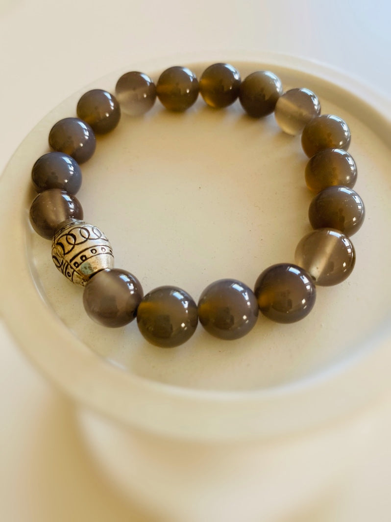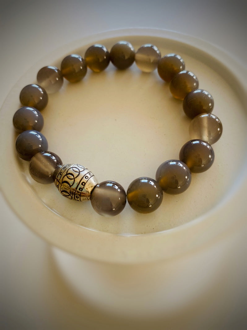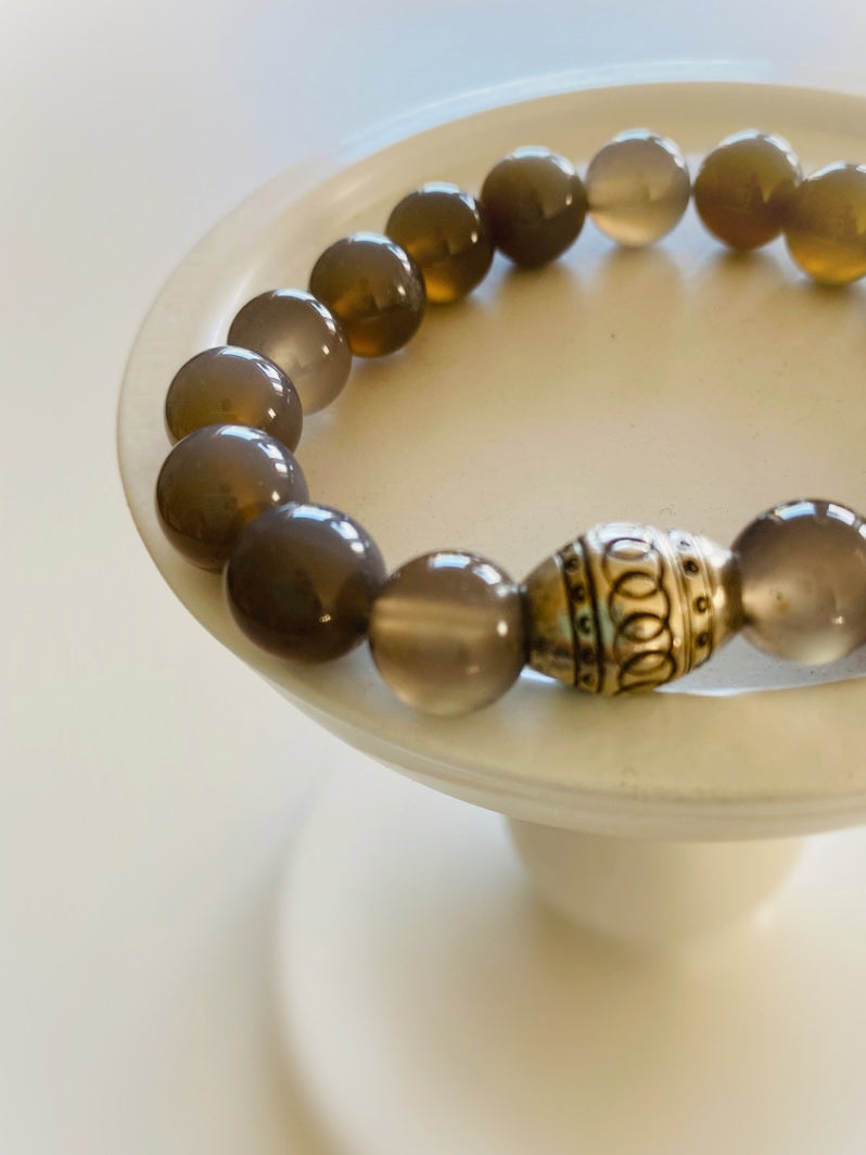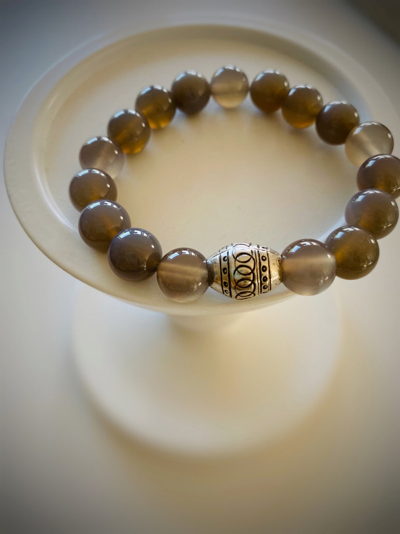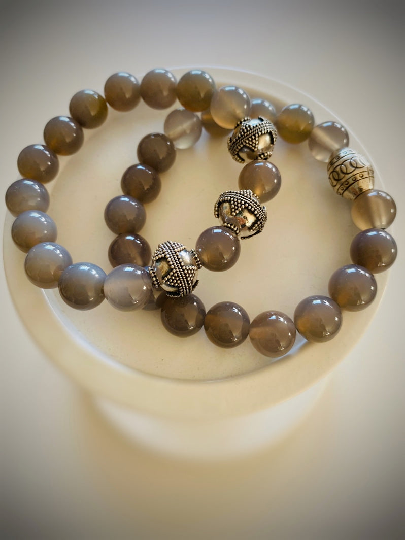 Perlen: Grauachat 10mm und Thai-Silber-Perle