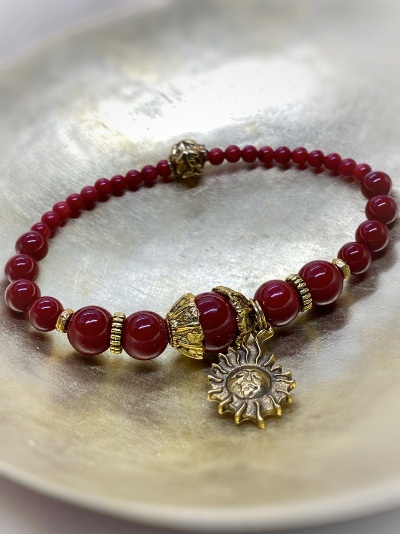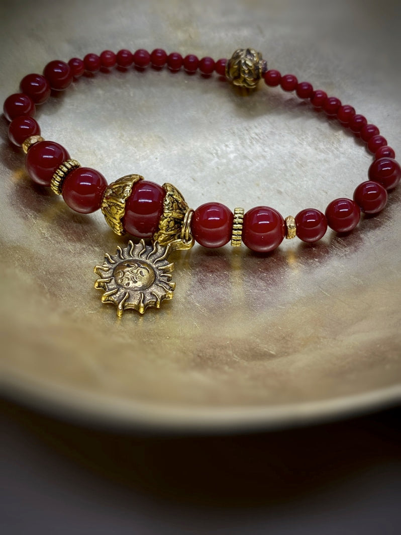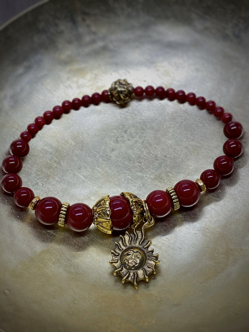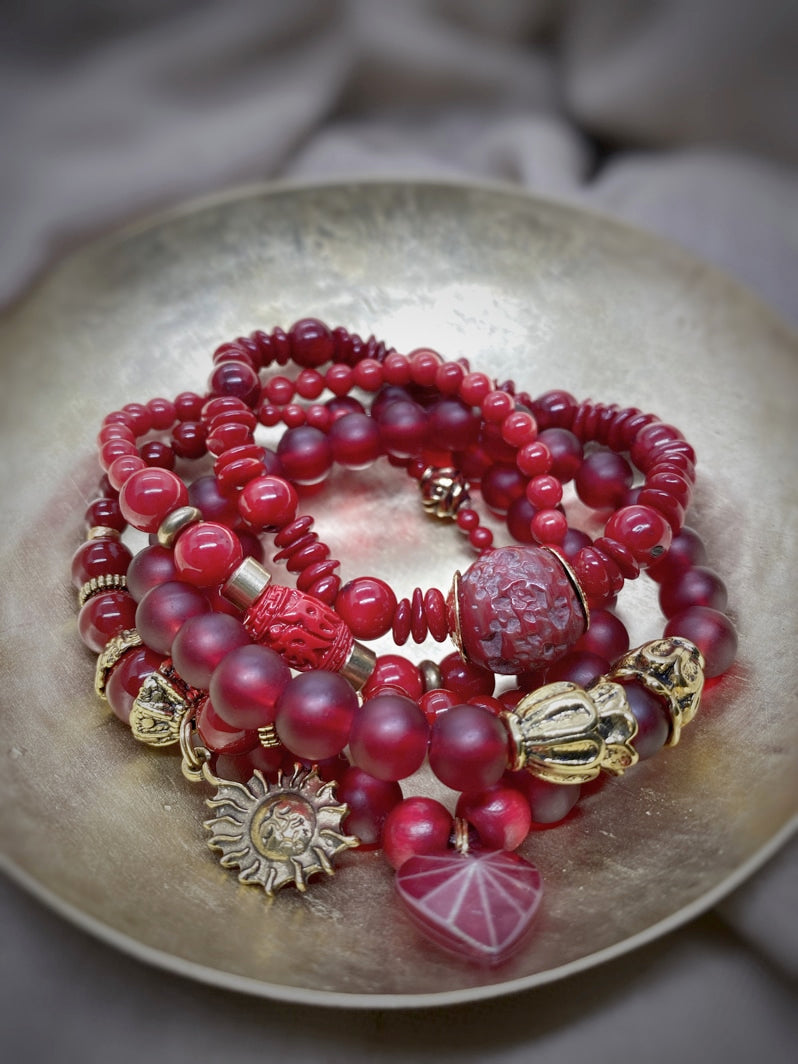 Tiefrote Muschelperlen, 8mm, mit goldfarbenen Metall-Perlkappen