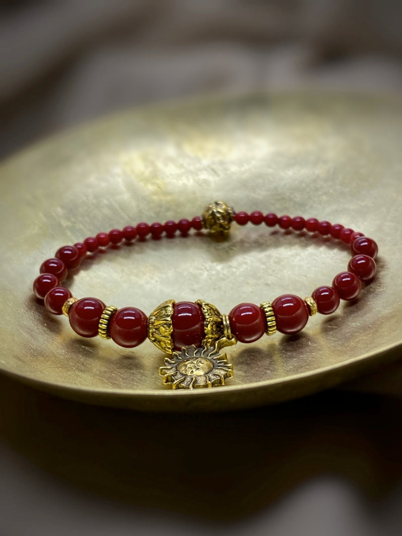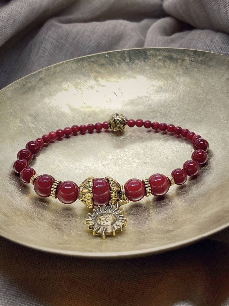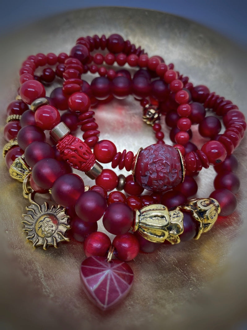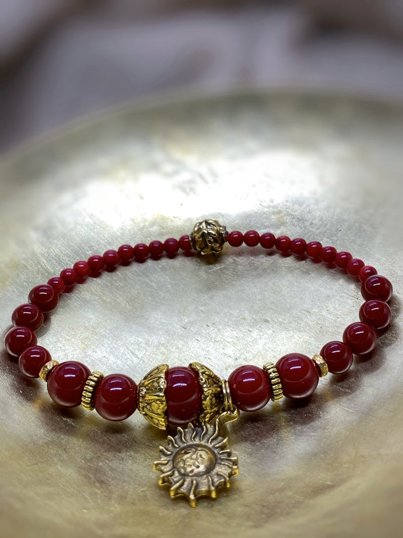 Tiefrote Muschelperlen, 8mm, mit goldfarbenen Metall-Perlkappen