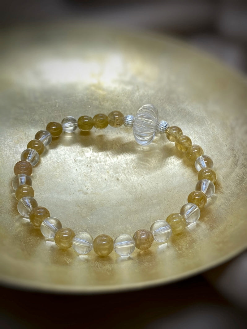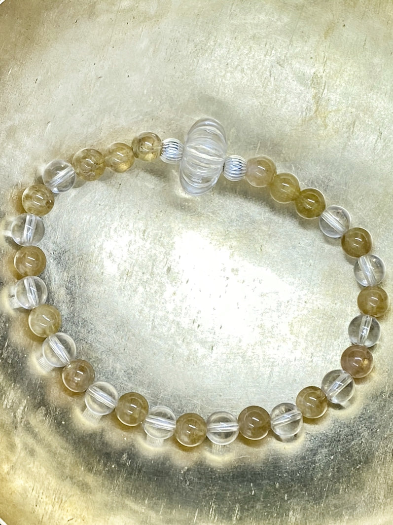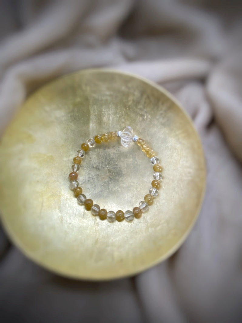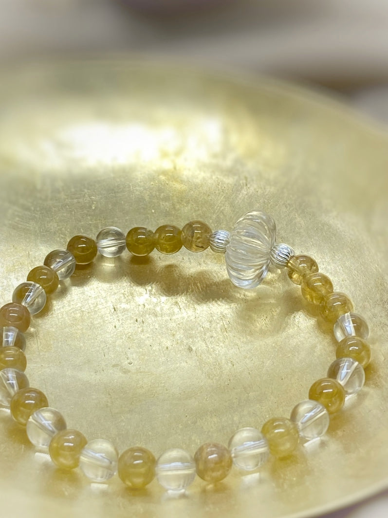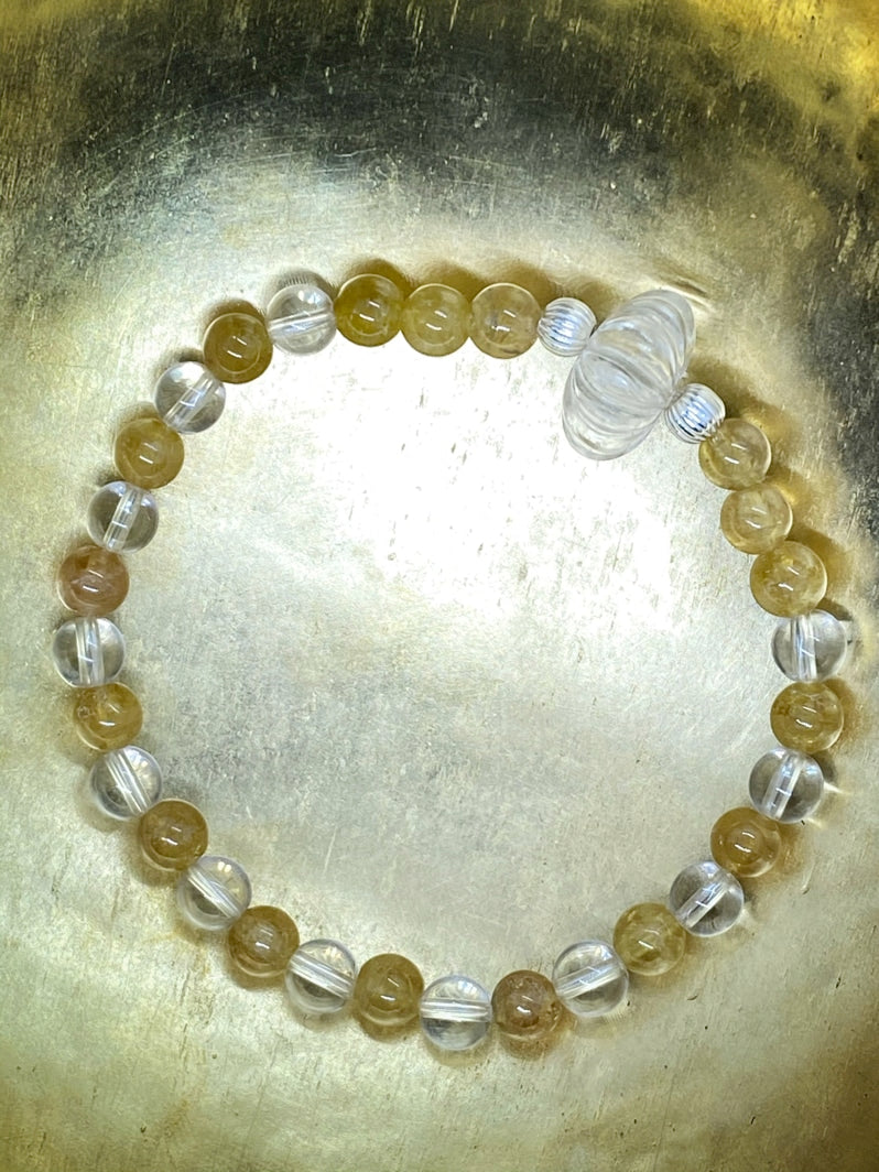 Perlen: Gelber Turmalin 6 mm, Bergkristall 6mm