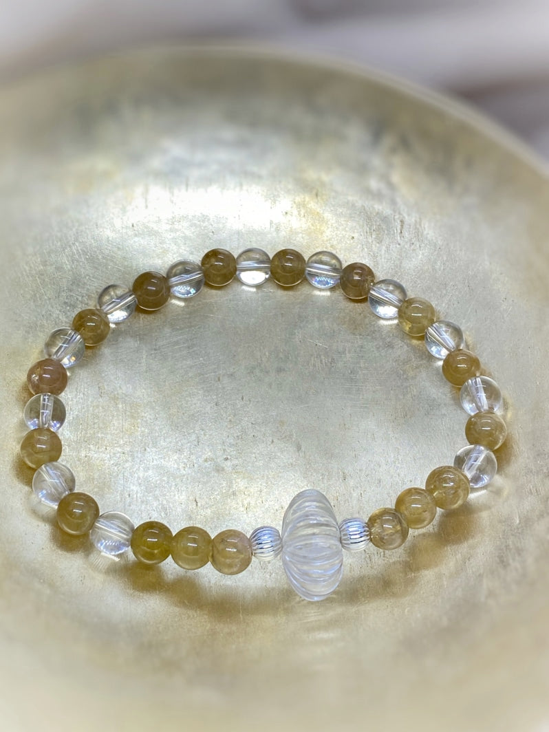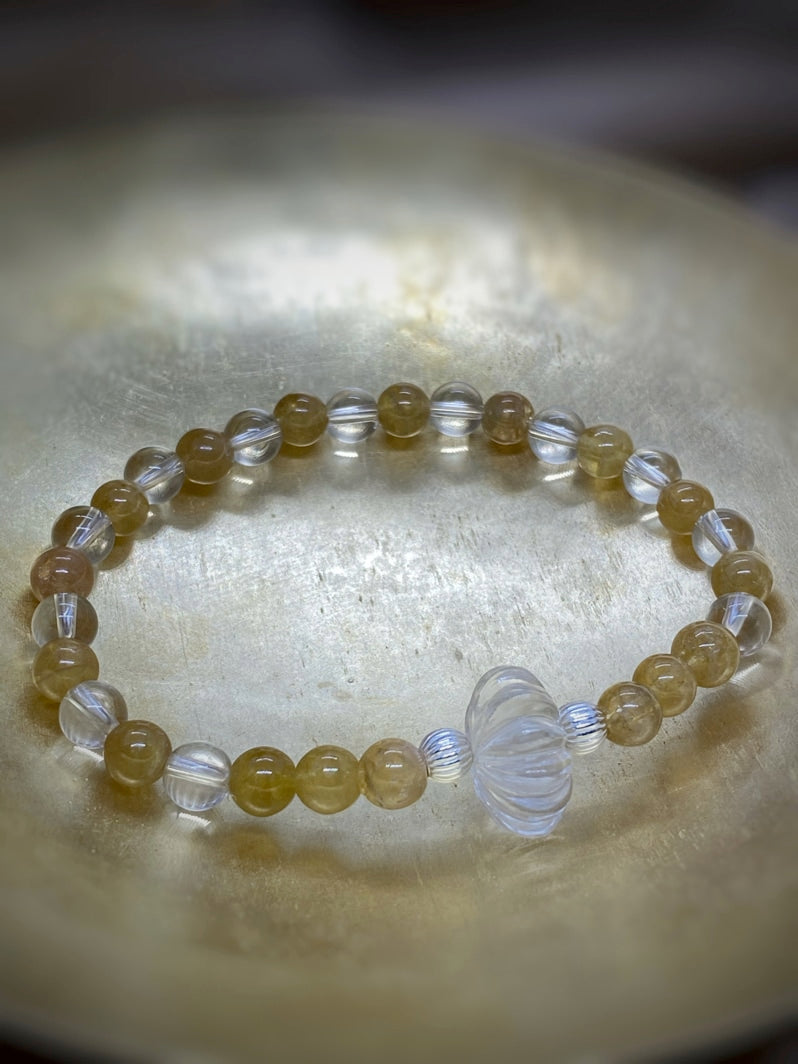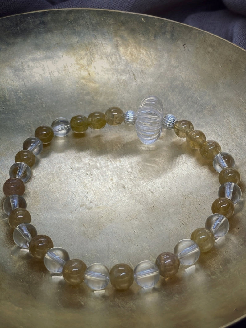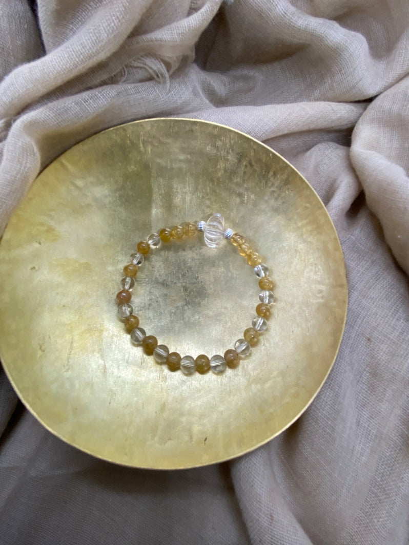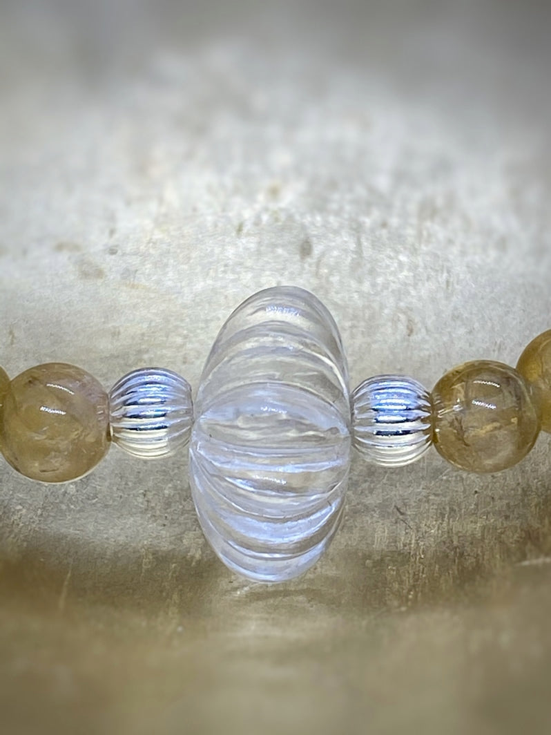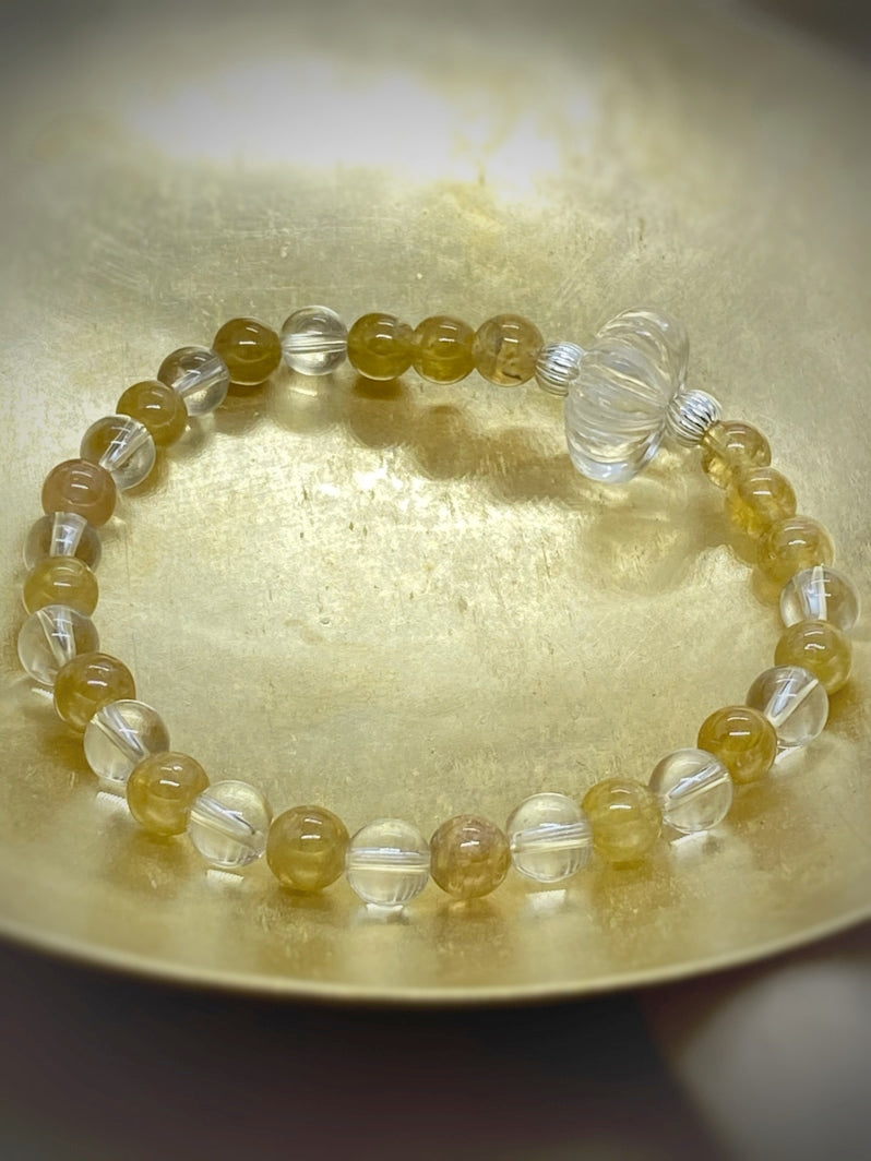 Perlen: Gelber Turmalin 6 mm, Bergkristall 6mm