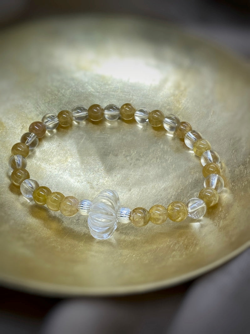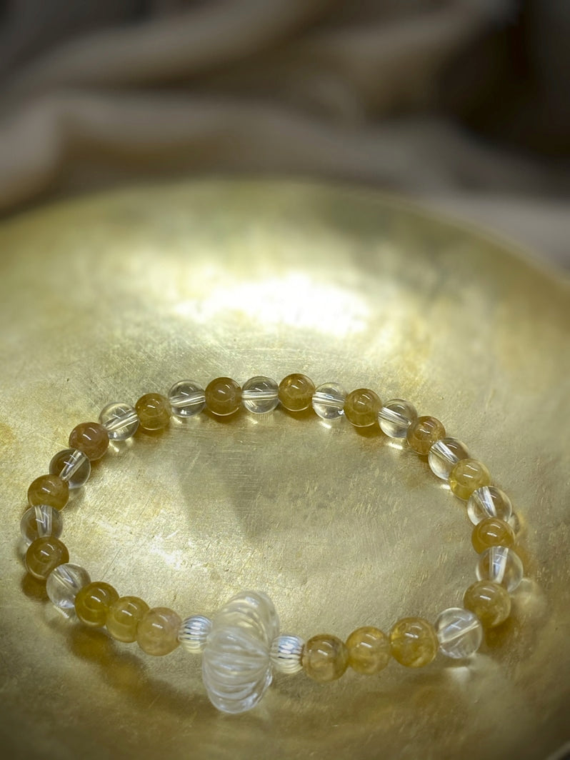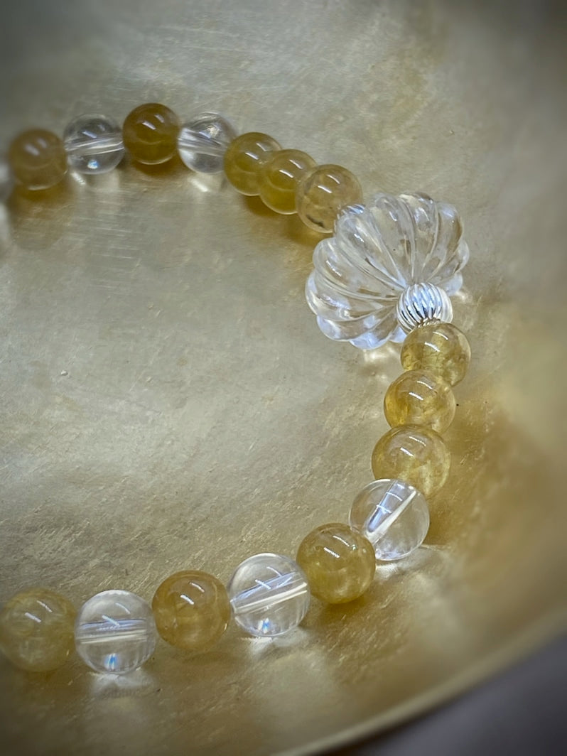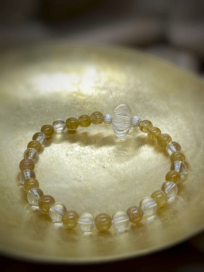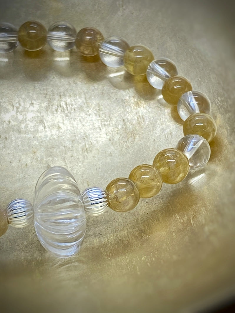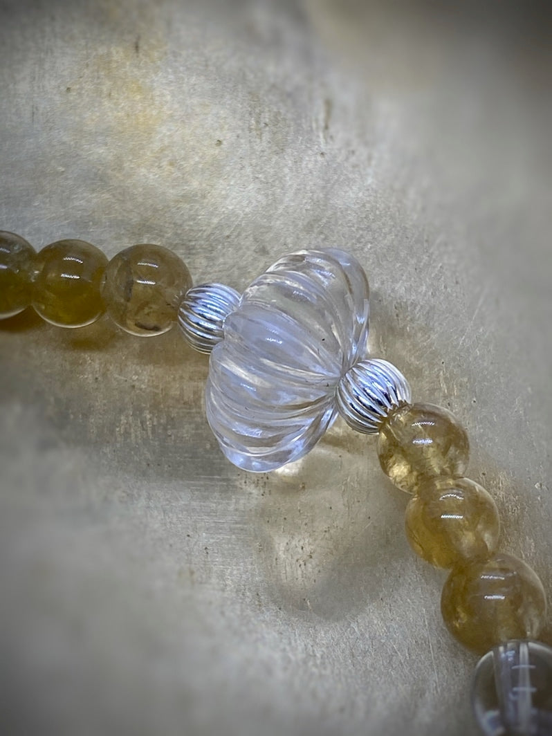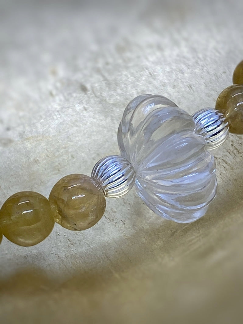 Sehr seltene gelbe Turmalin-Perlen und glasklarer Bergkristall