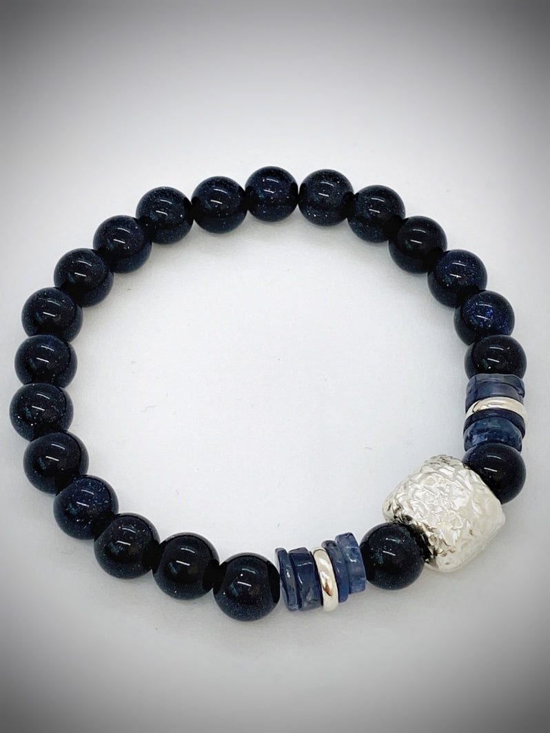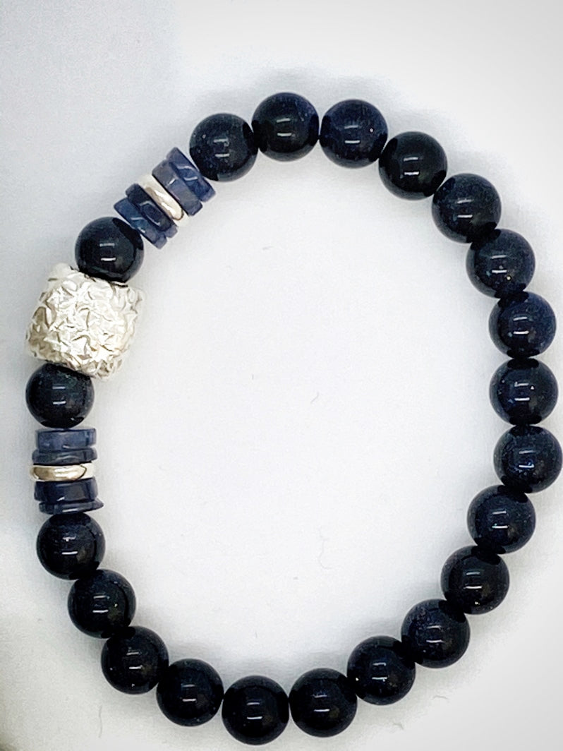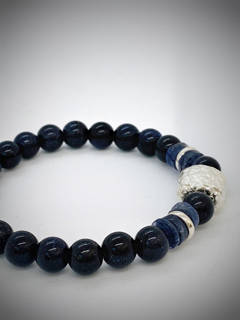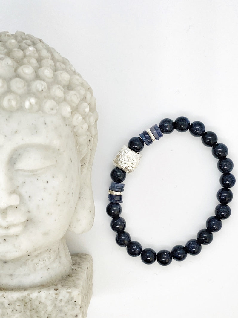 Blaufluss 8mm, Iolith-Buttons 8mm, Silberscheiben (925), handgearbeitetes Kissen aus Hill Tribe Silber