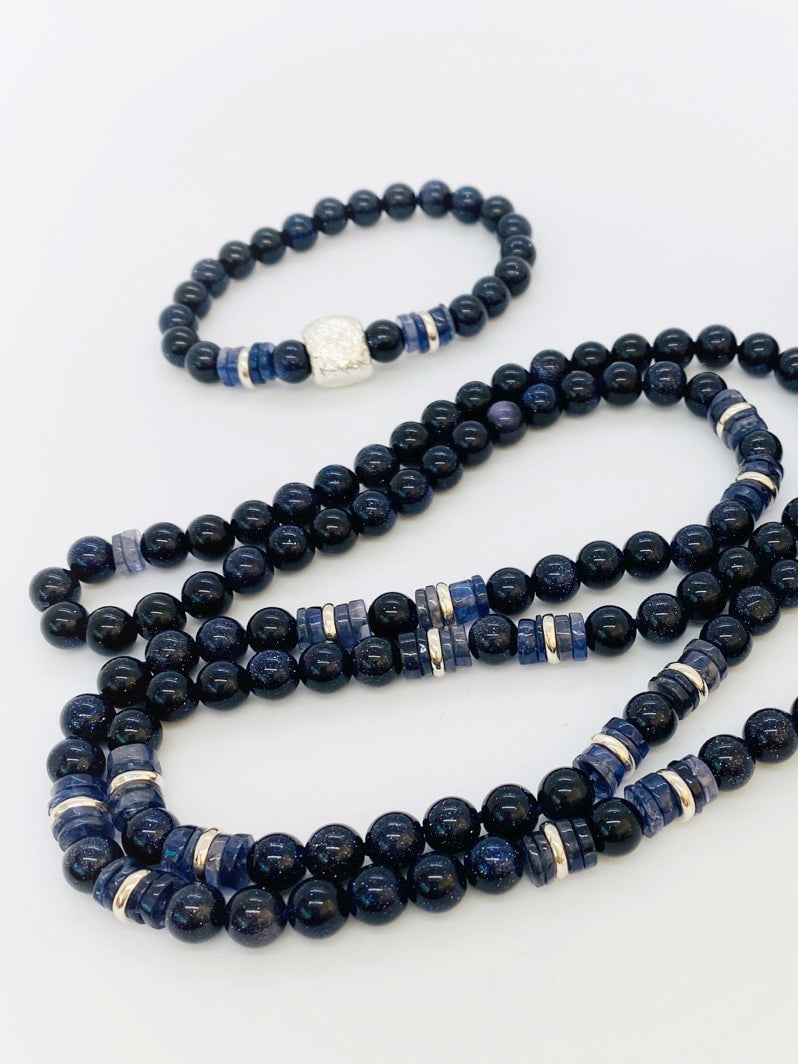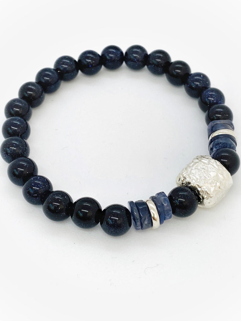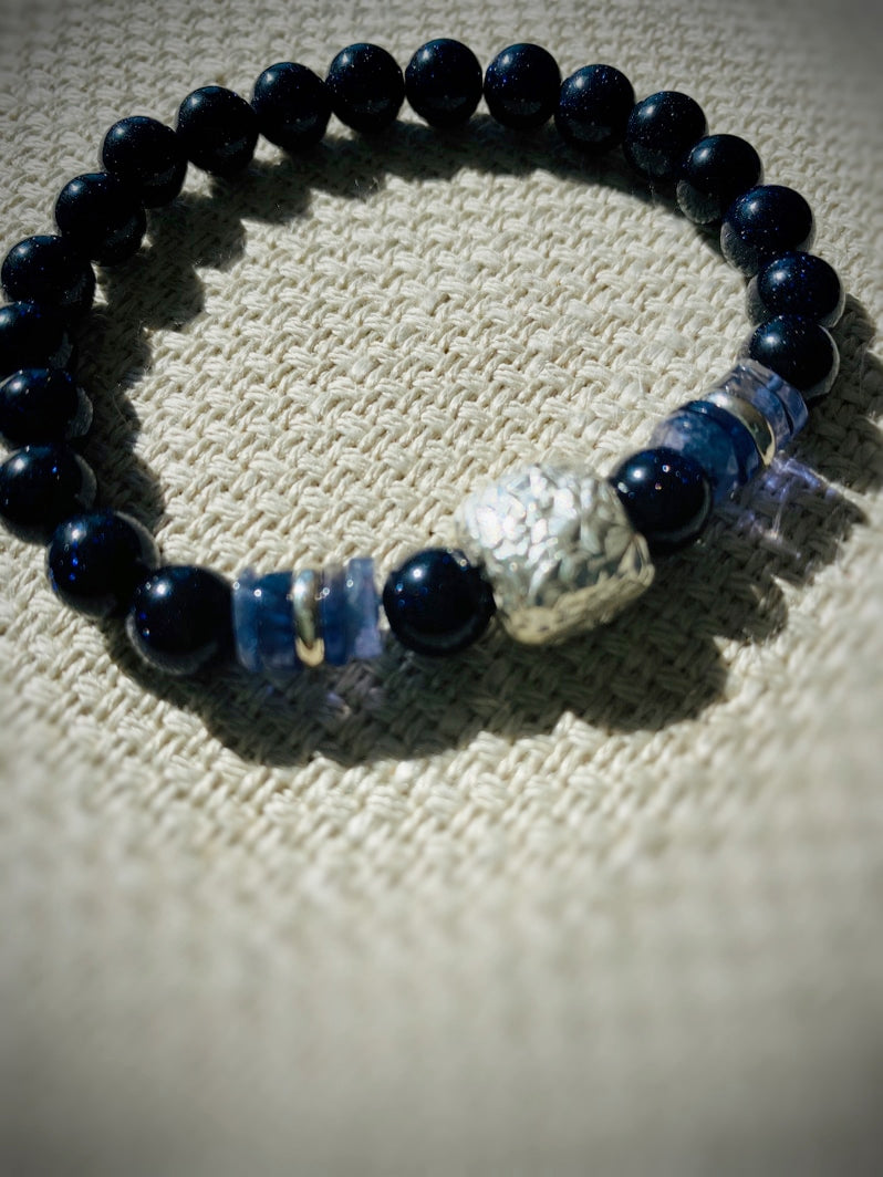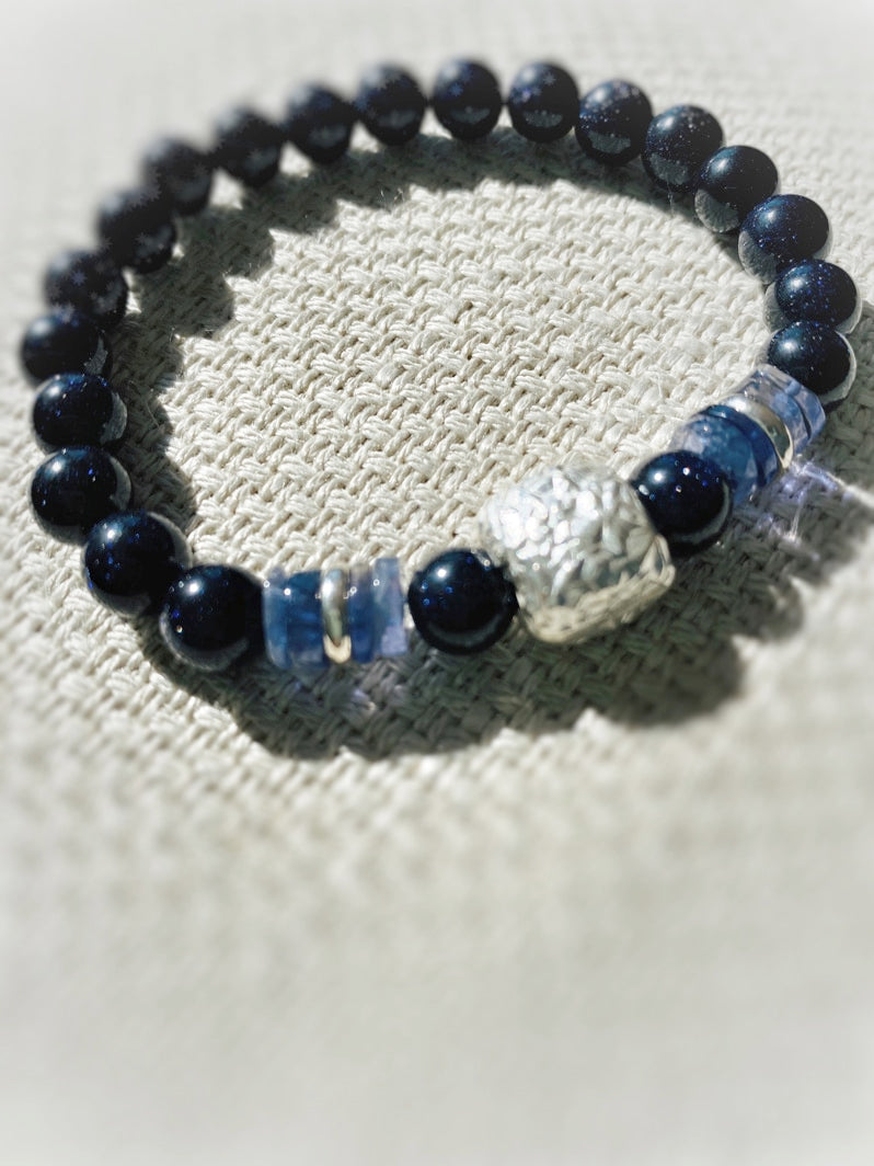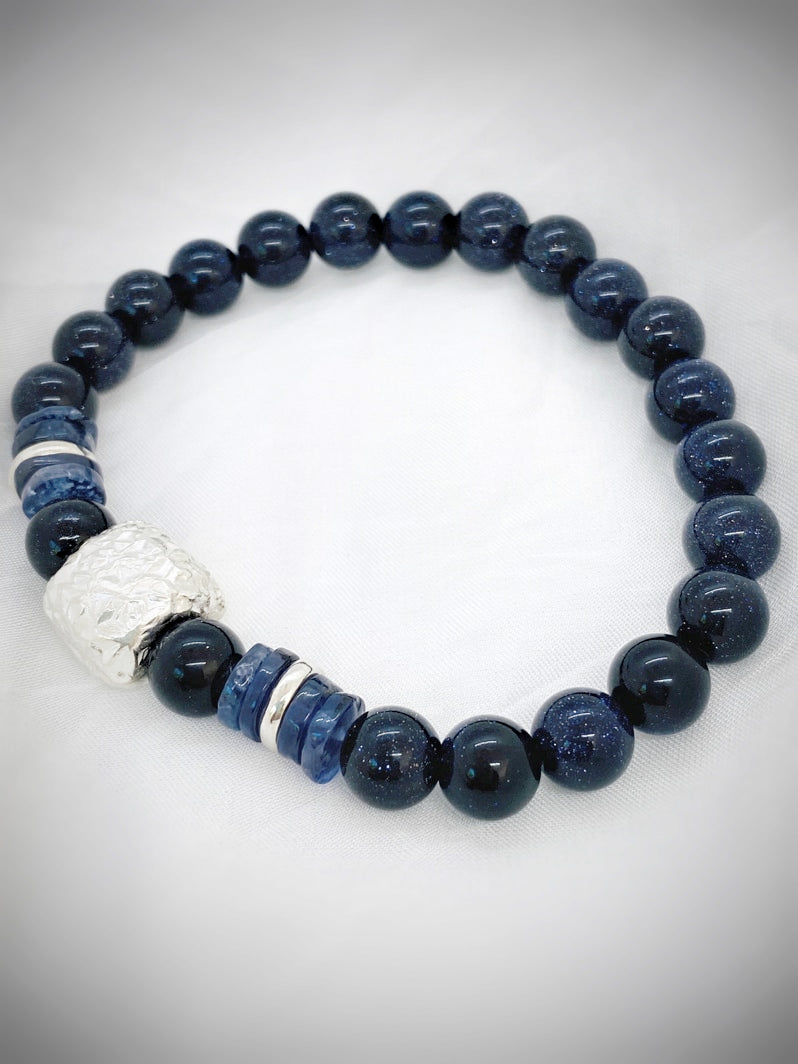 Blaufluss 8mm, Iolith-Buttons 8mm, Silberscheiben (925), handgearbeitetes Kissen aus Hill Tribe Silber
