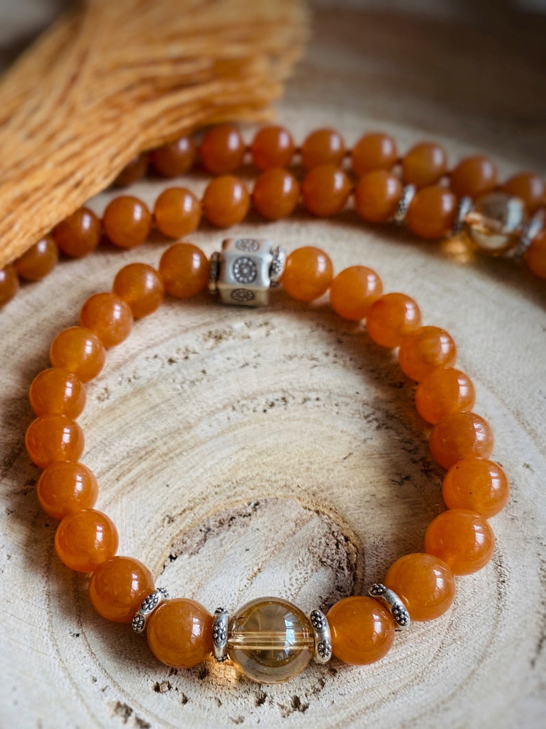 Perlen: Roter Aventurin mit Gold bedampftem Bergkristall und echtem, handgearbeitetem Karen Hill Tribe Silber aus Thailand