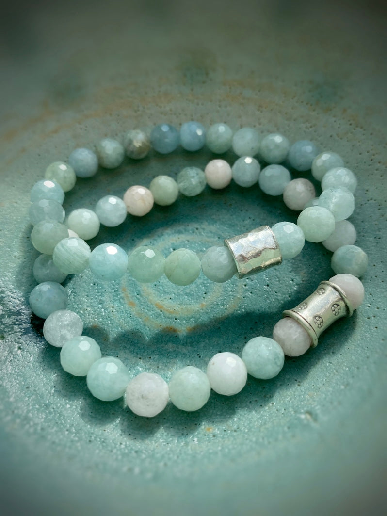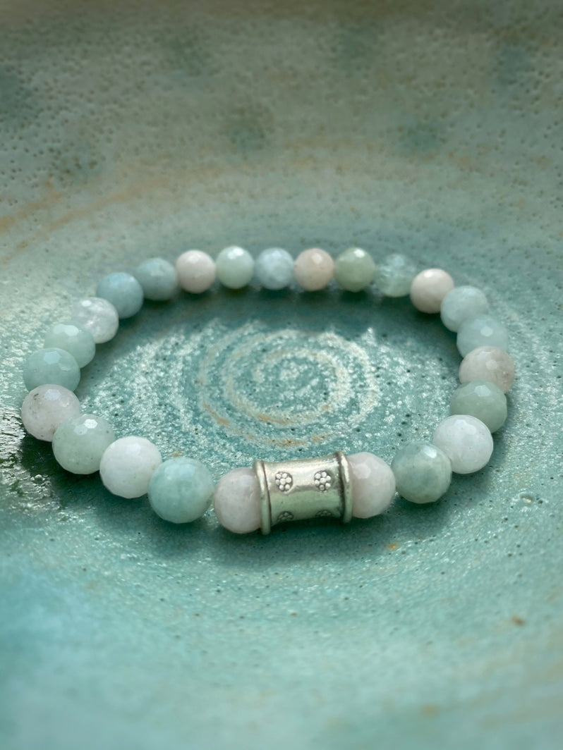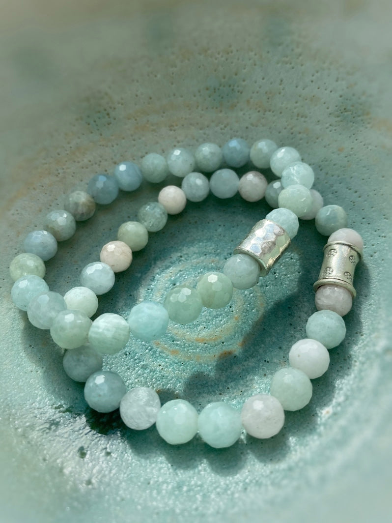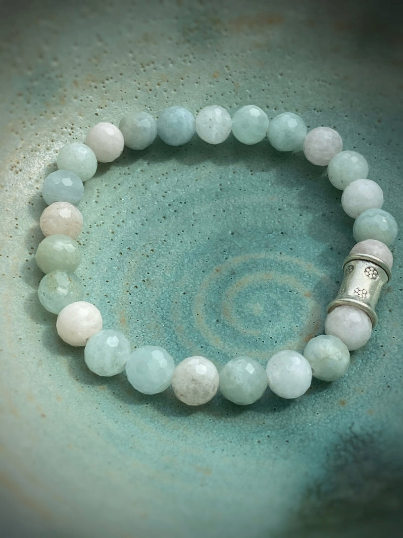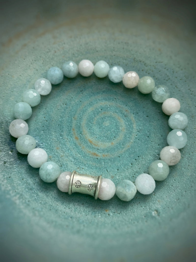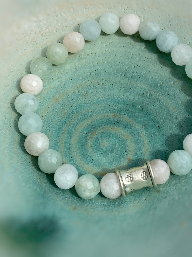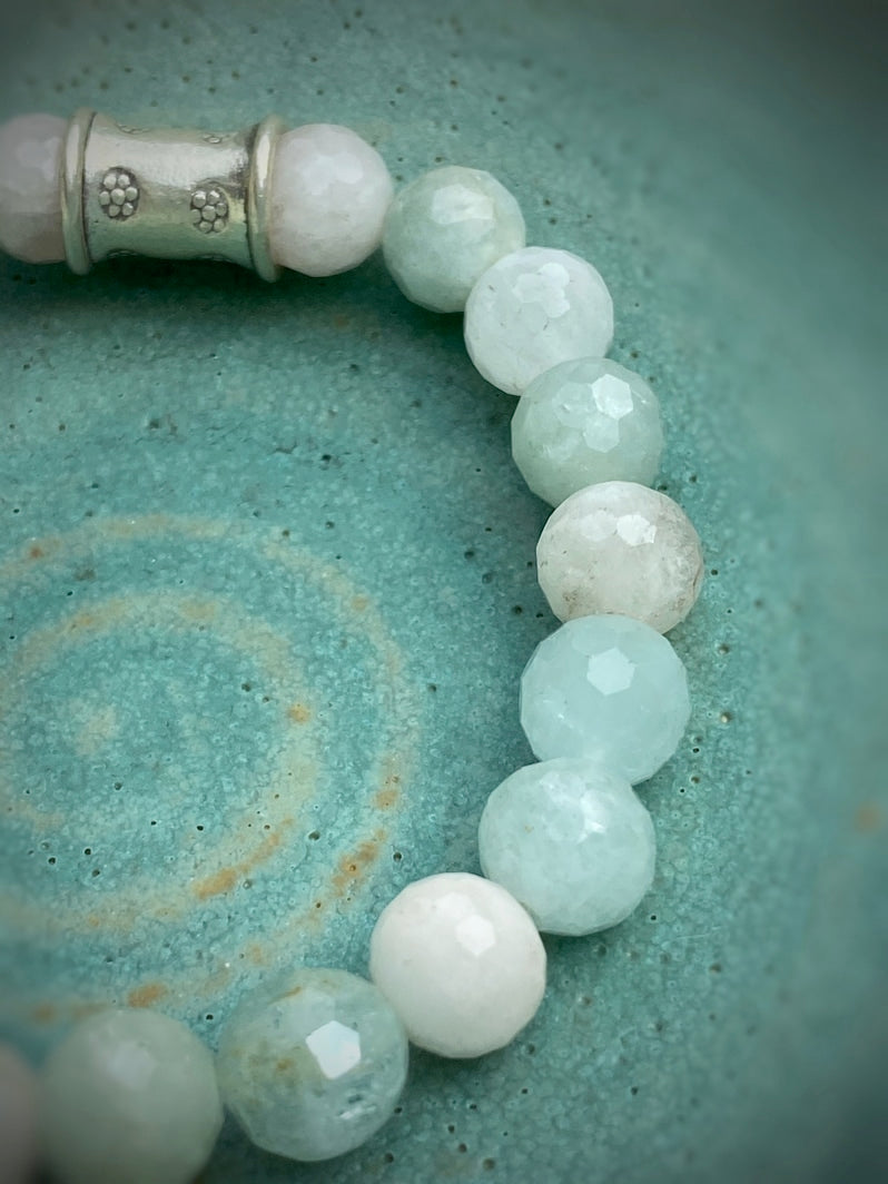 Perlen: Besonders schöne facettierte Morganit-Perlen mit thailändischer handgearbeiteter Silberperle