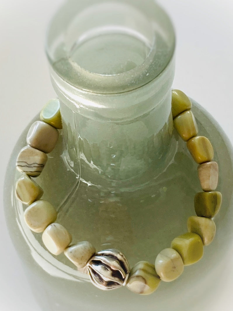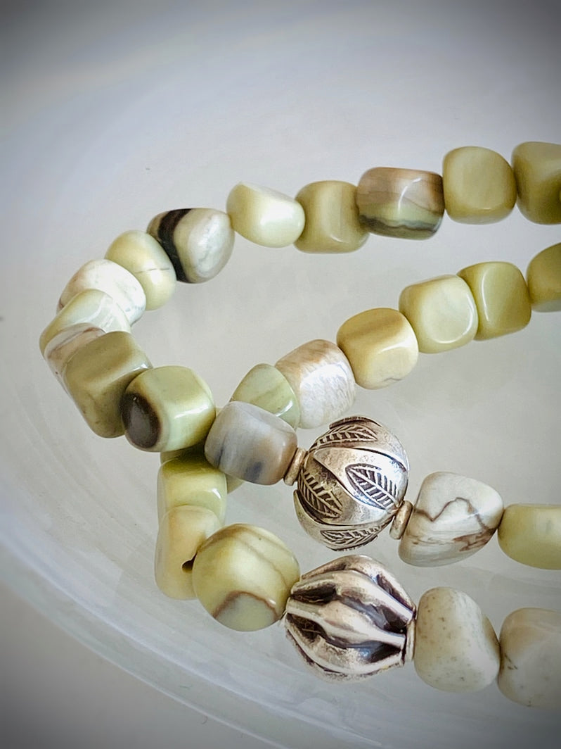 Perlen: Butterjade-Nuggets mit echt silberner in Thailand handgearbeiteter Perle