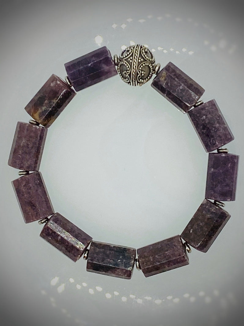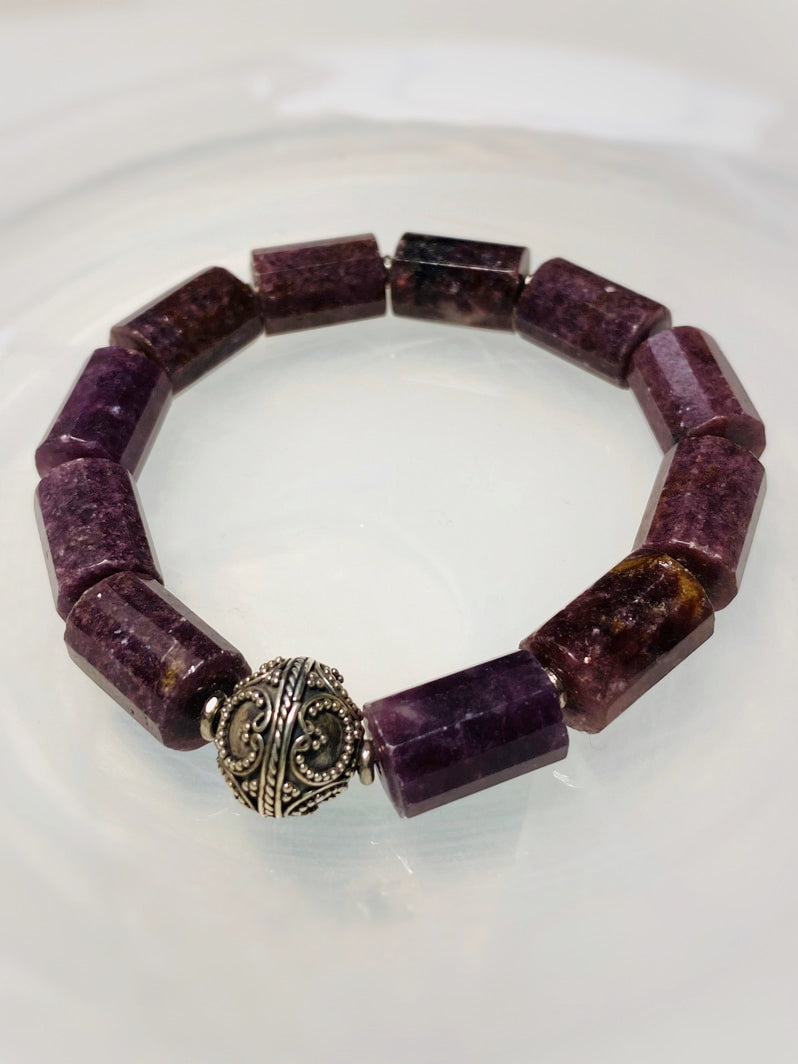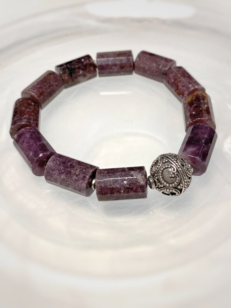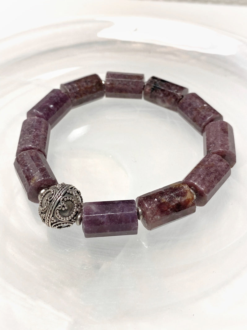 Lepidolith-Rollen mit Bali-Silber-Perle