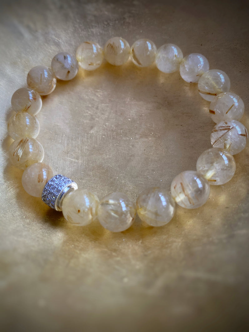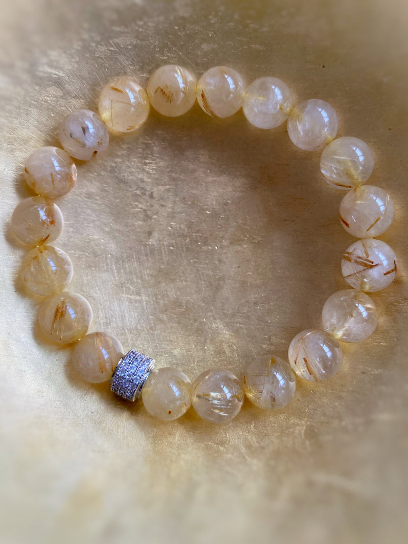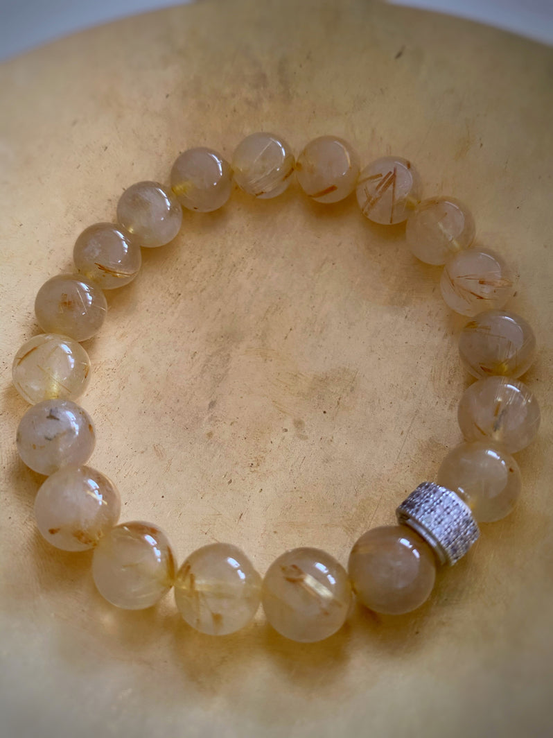 Perlen: Goldener Rutilquarz 10mm mit von Zirkonen besetzter Kaschierperle