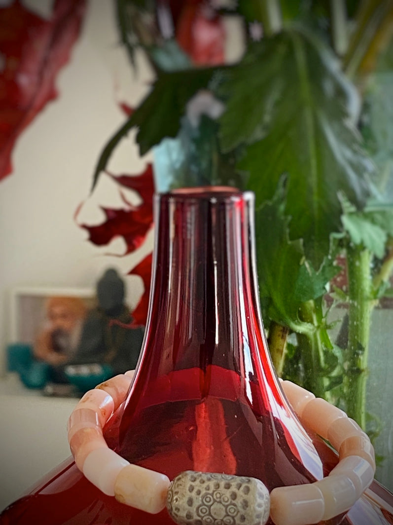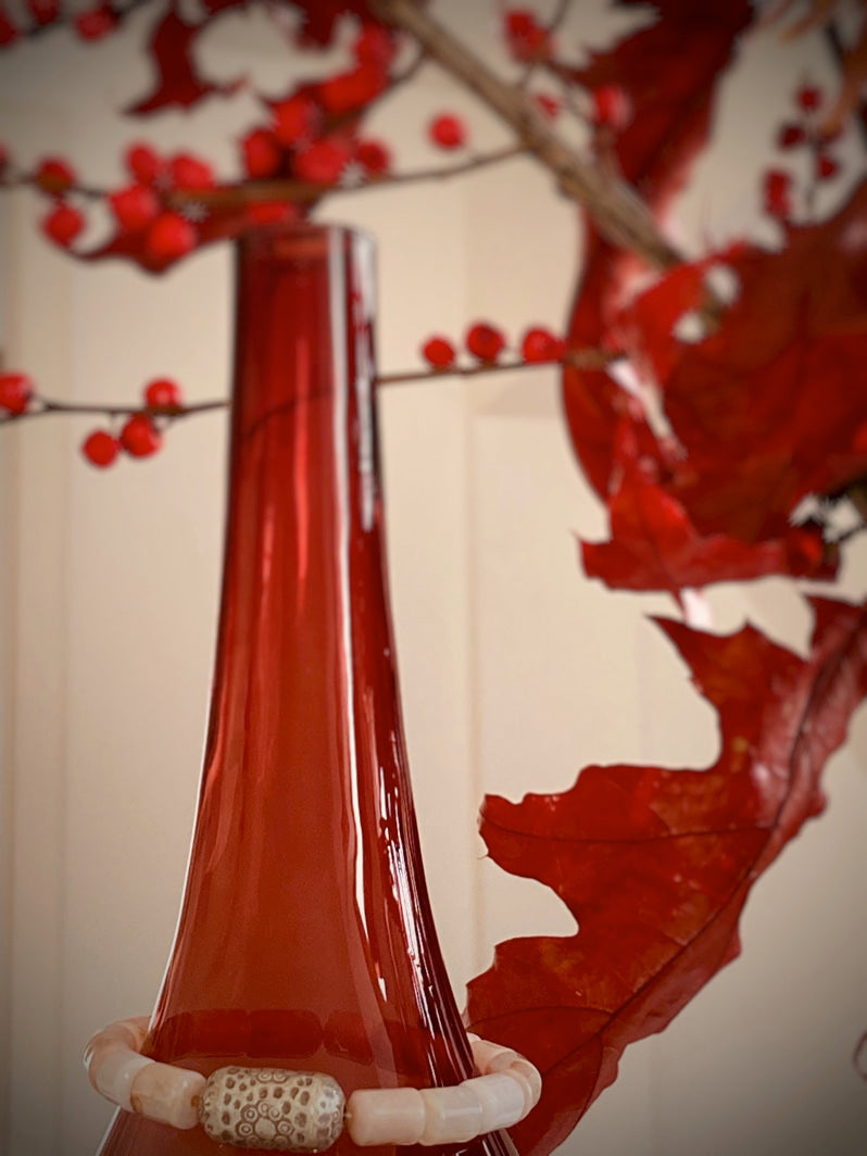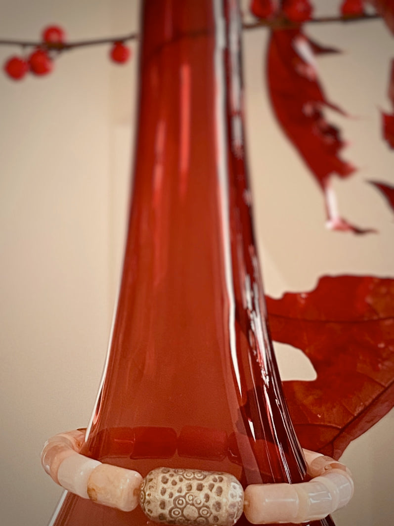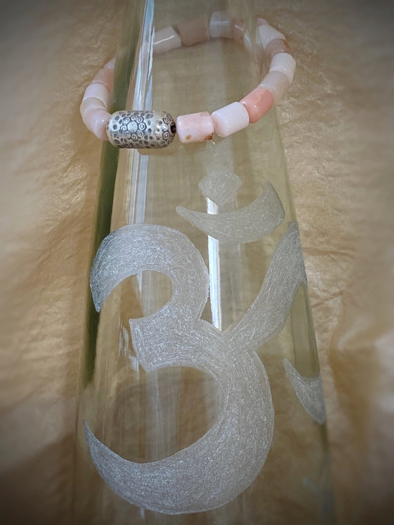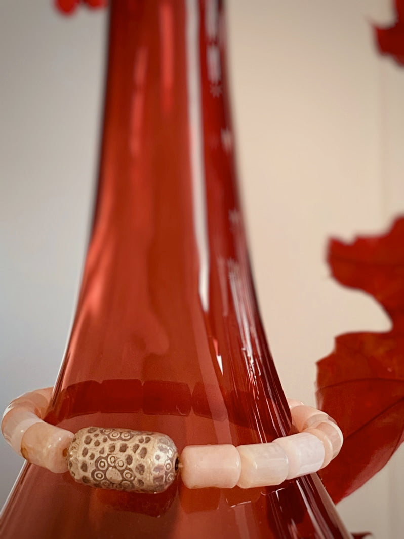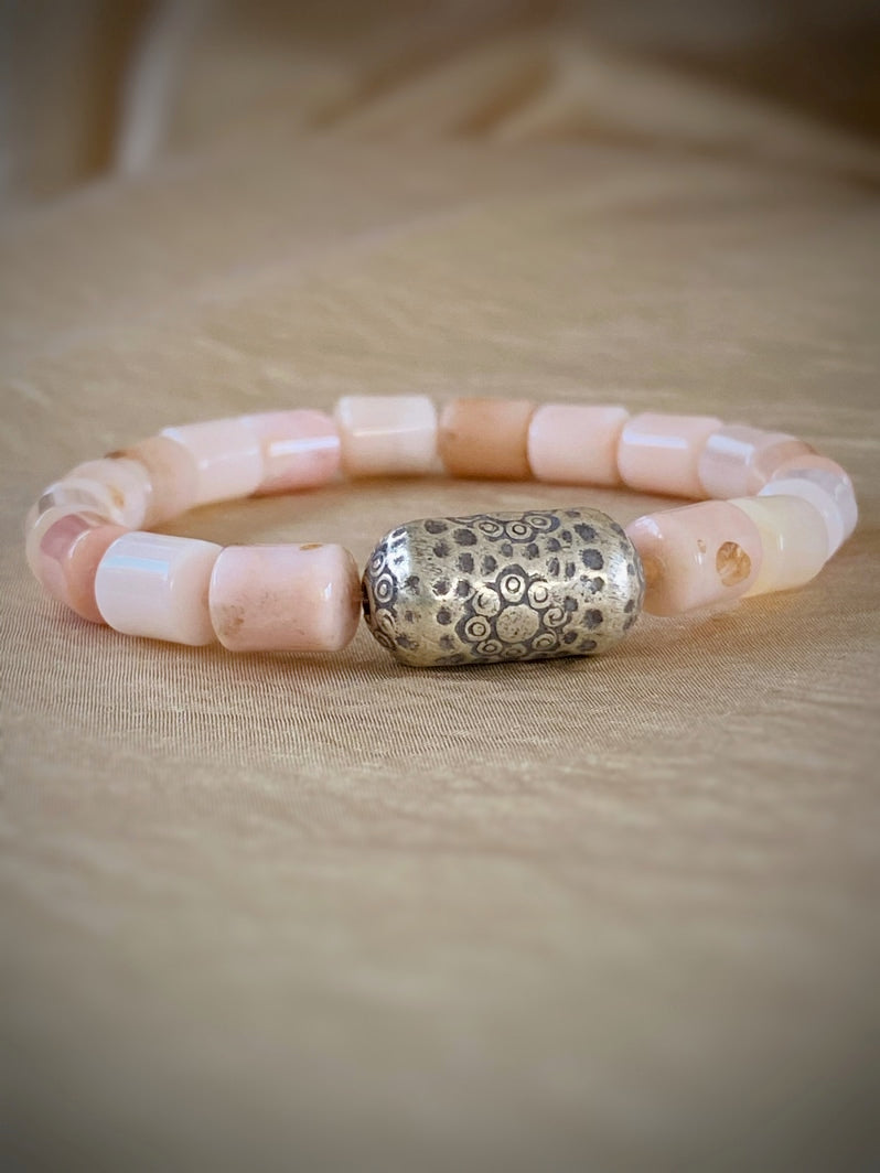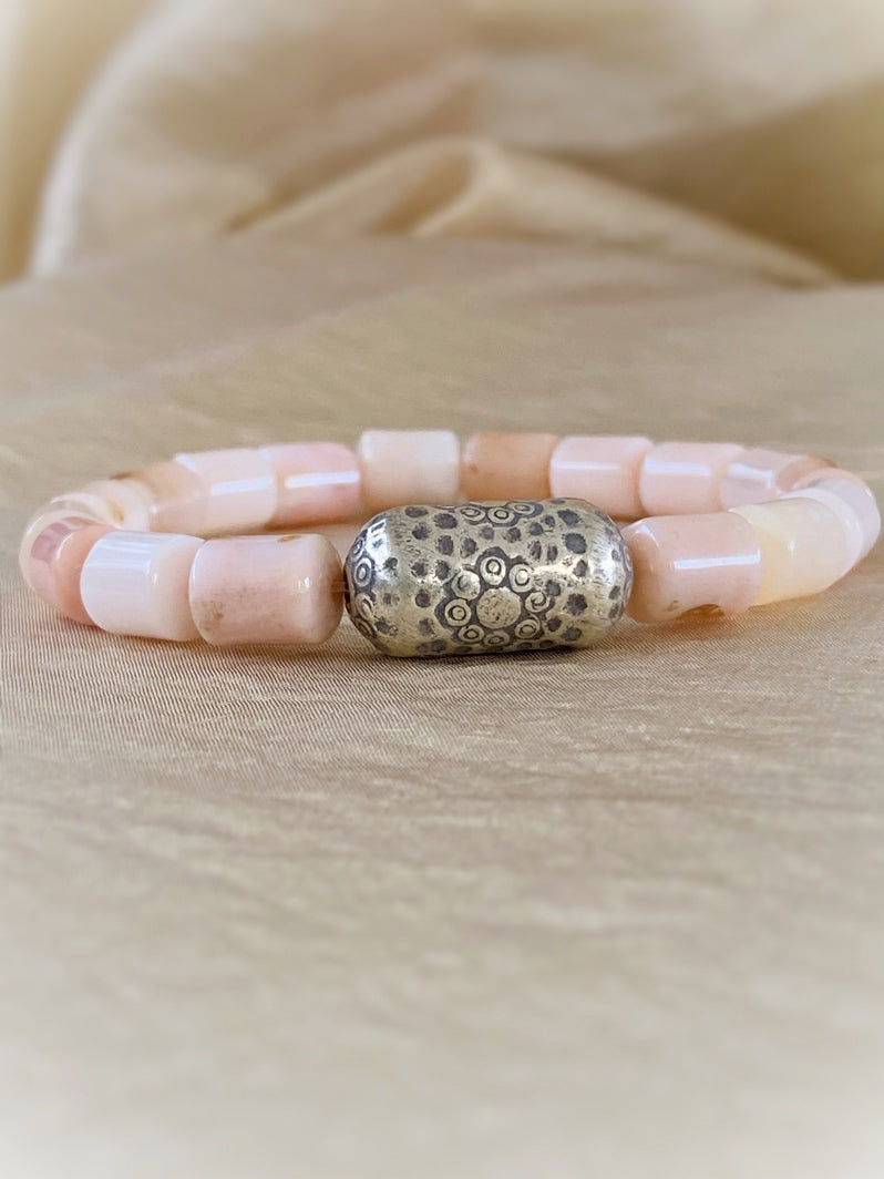 Perlen: Peruanische rosafarbene Opal-Rollen 8mm mit handgearbeiteter thailändischer Silberrolle