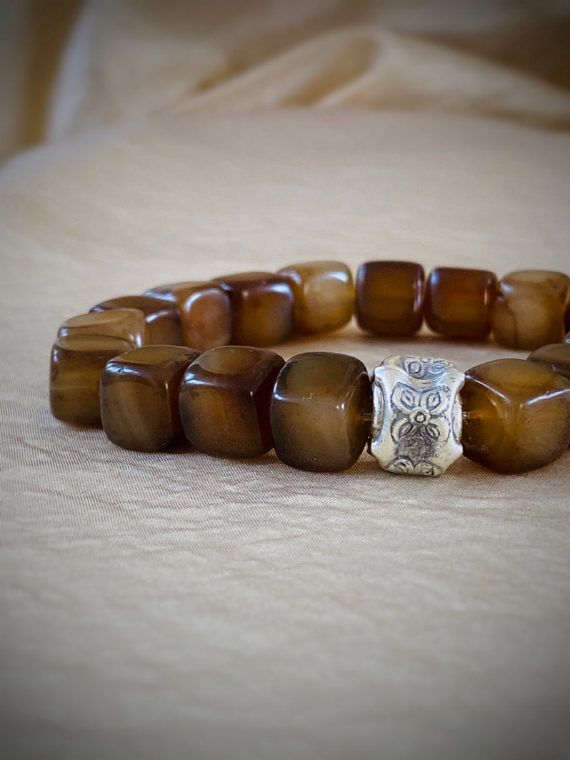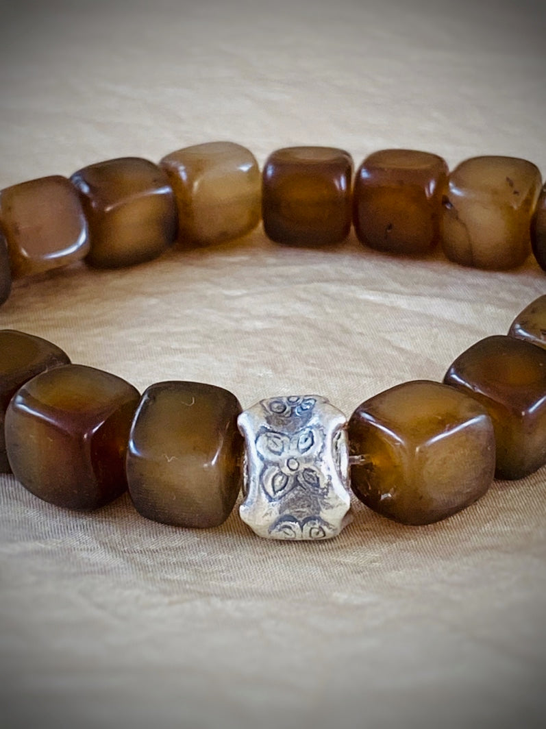 Perlen: Braune Achatwürfel 10mm und handgearbeitete Thai-Silber-Perle