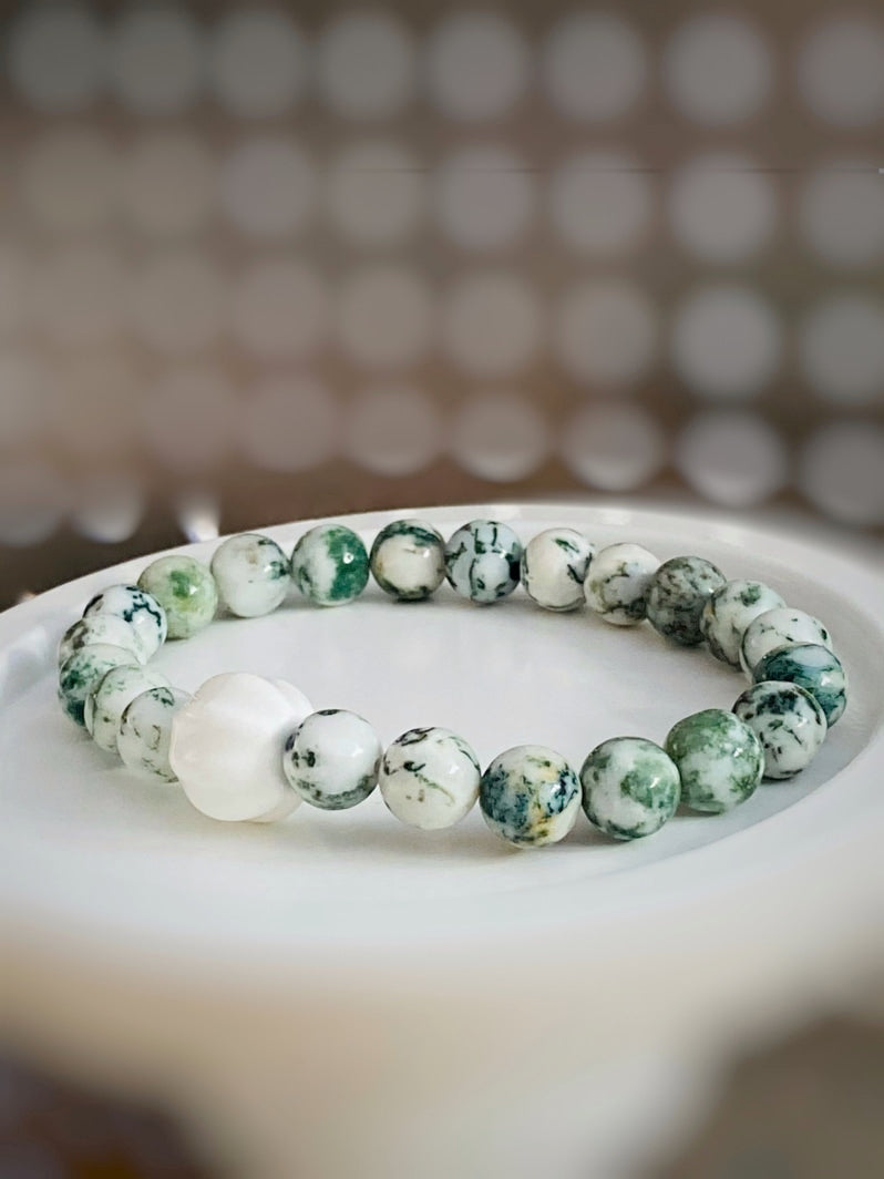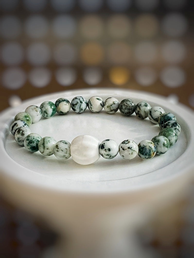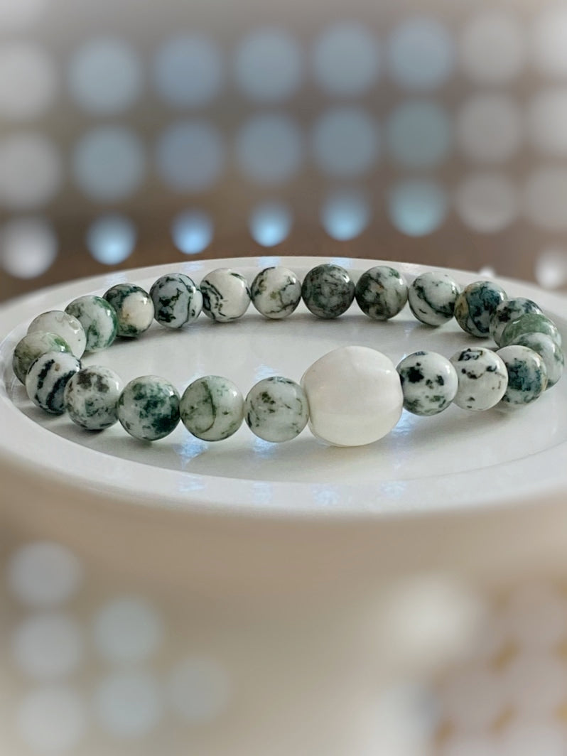 Perlen: Baumachat, 8mm, weiße kannelierte Achatperle 12mm