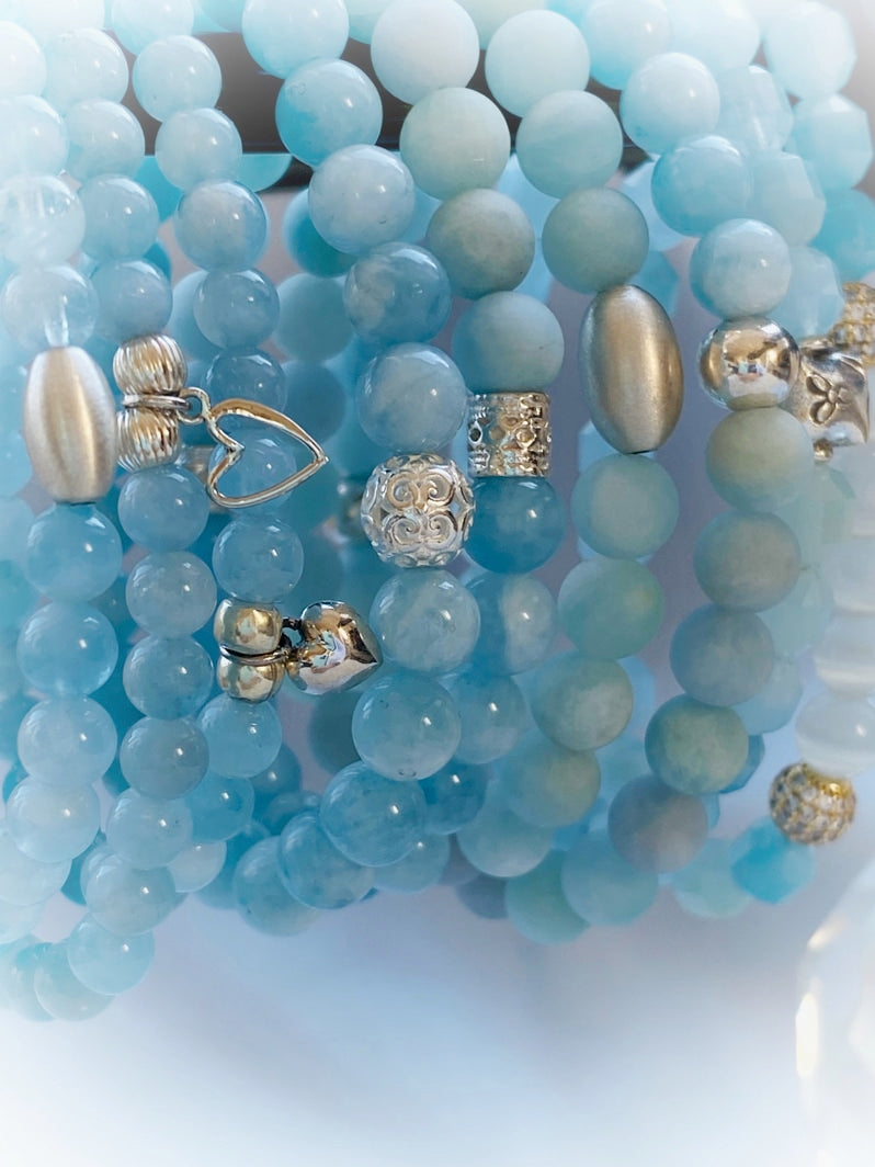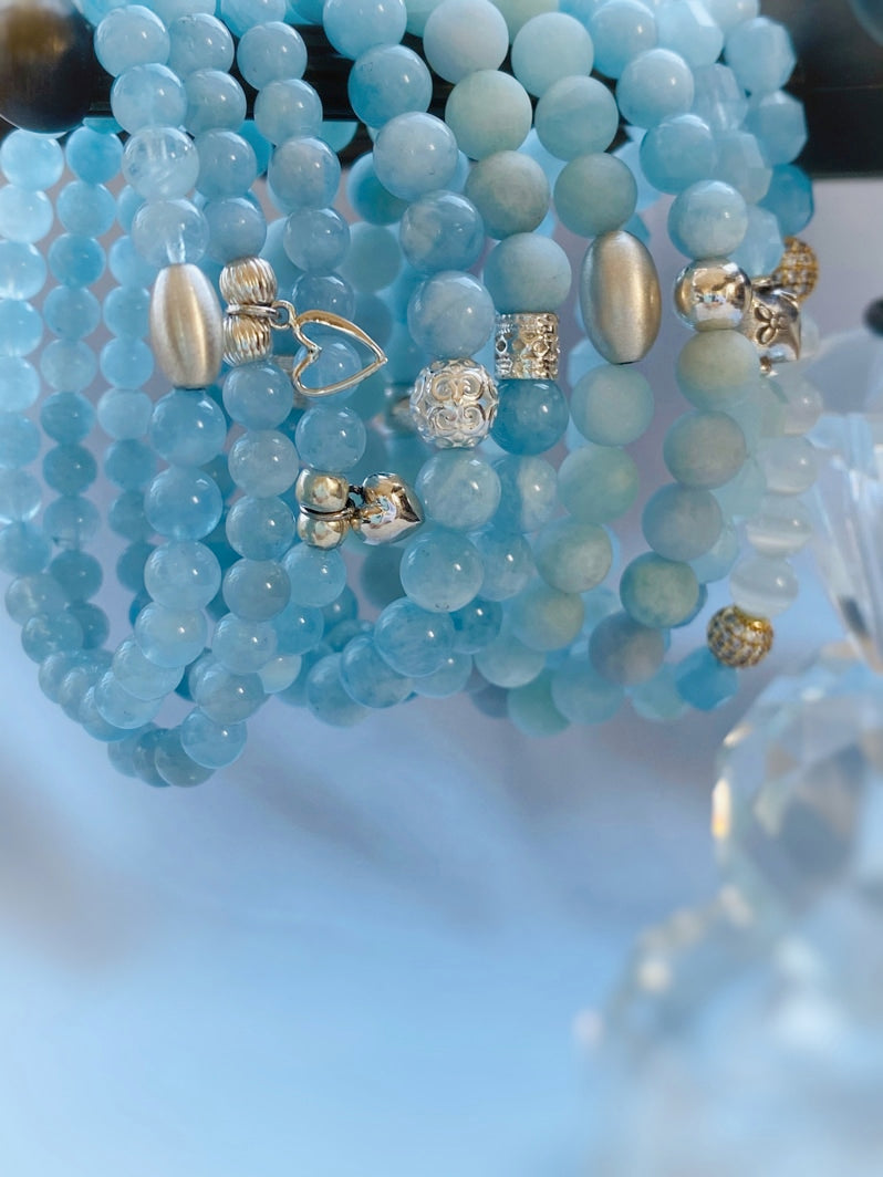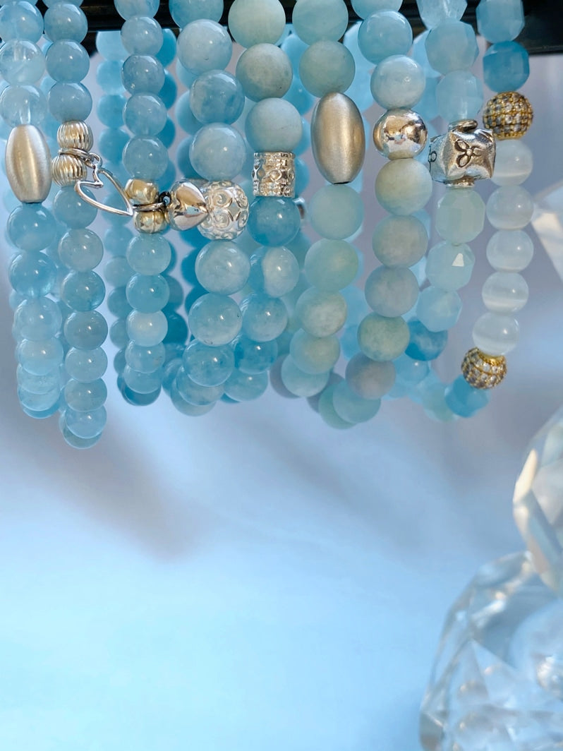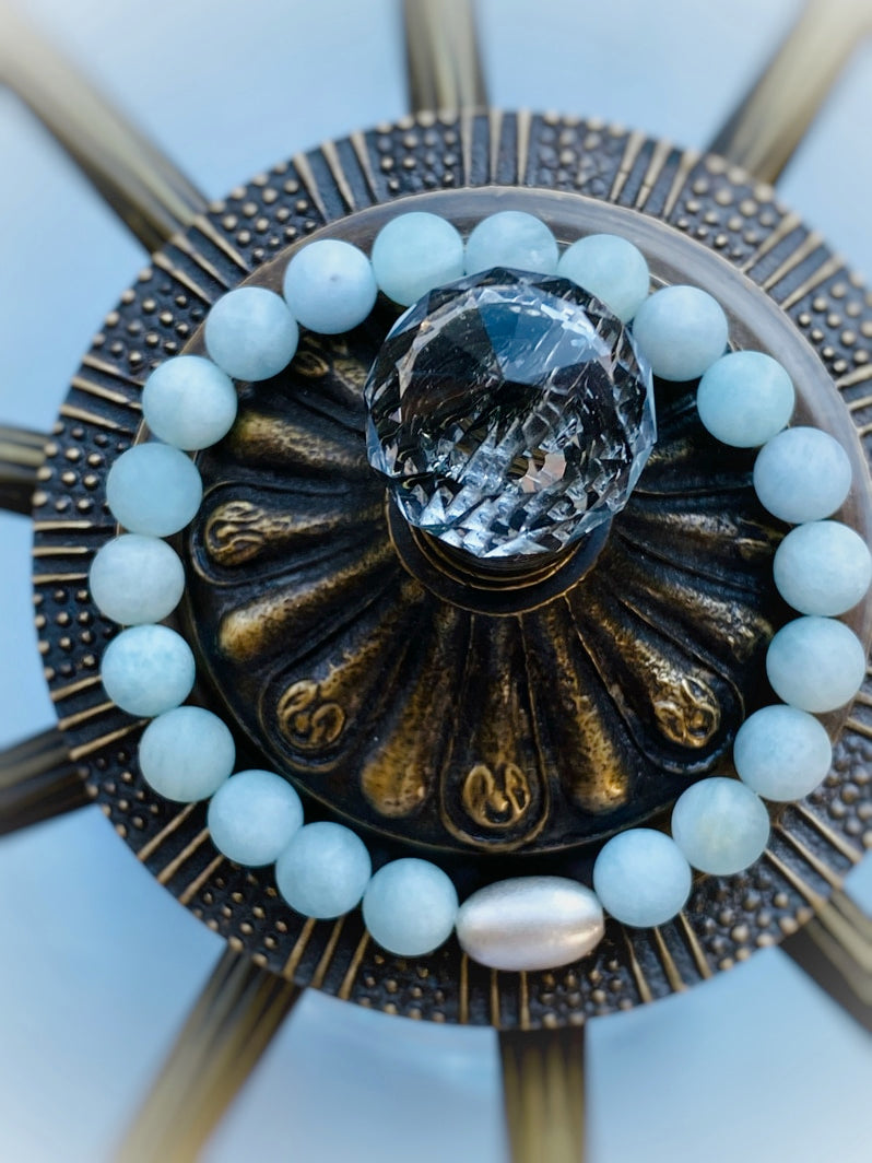 Der Aquamarin soll Gelassenheit, Ruhe, Harmonie und Ausgewogenheit bringen. Aquamarin wird nachgesagt, dass er Aggressivität lindert. Bei rücksichtslosen Menschen bewirkt er gar Toleranz und Umsicht! Der Aquamarin symbolisiert den Frieden. Er stärkt das Selbstbewusstsein und sorgt dafür, dass die eigenen Bedürfnisse besser ausgedrückt werden können. So gibt er Weitblick und Besonnenheit. Der Aquamarin wird gerne empfohlen als Helfer bei Depressionen. Aquamarin gilt als ein Stein, der Liebe und Treue, auch in schweren Zeiten, und festigt Partnerschaften. Er beschert außerdem geistiges Wachstum. Da der Aquamarin auch die Intuition stärkt, können neue Möglichkeiten erkannt und umgesetzt werden. Auch für Zielstrebigkeit, Ausdauer und Idealismus ist er förderlich. Er sorgt für die Konzentration der Energien auf den Weg zum Ziel und notwendiges Durchhaltevermögen und Widerstandskraft.