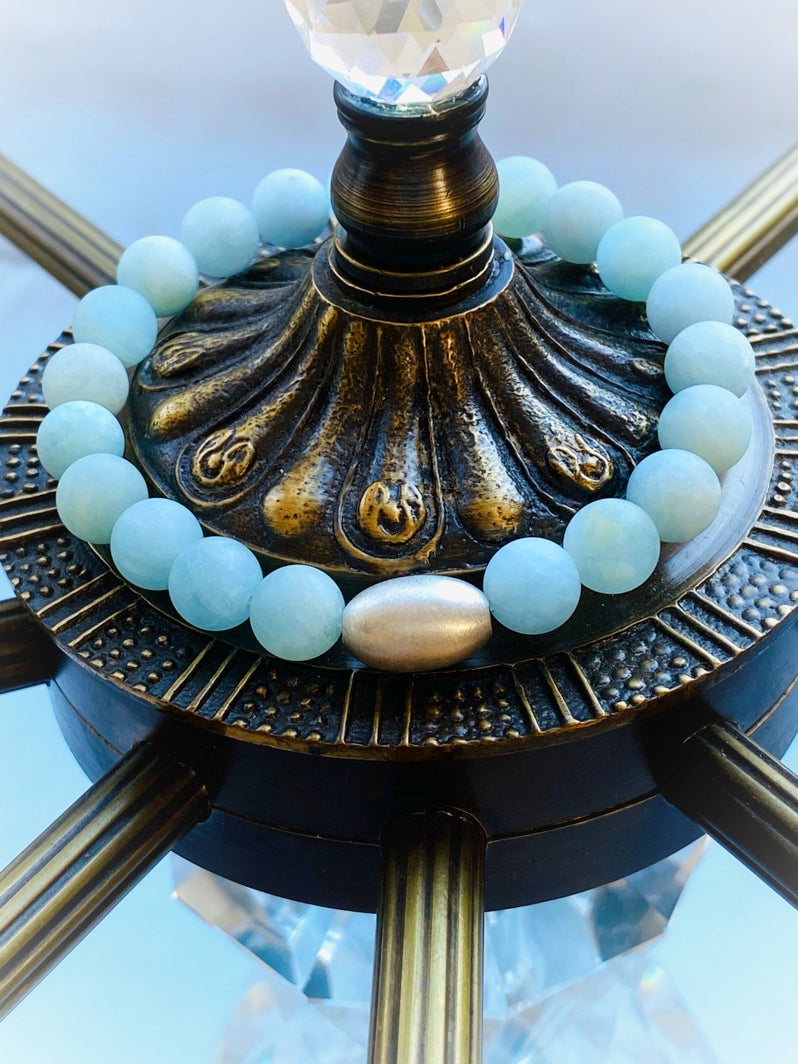 Perlen: Aquamarin matt 8mm mit gebürsteter Silber-Olive