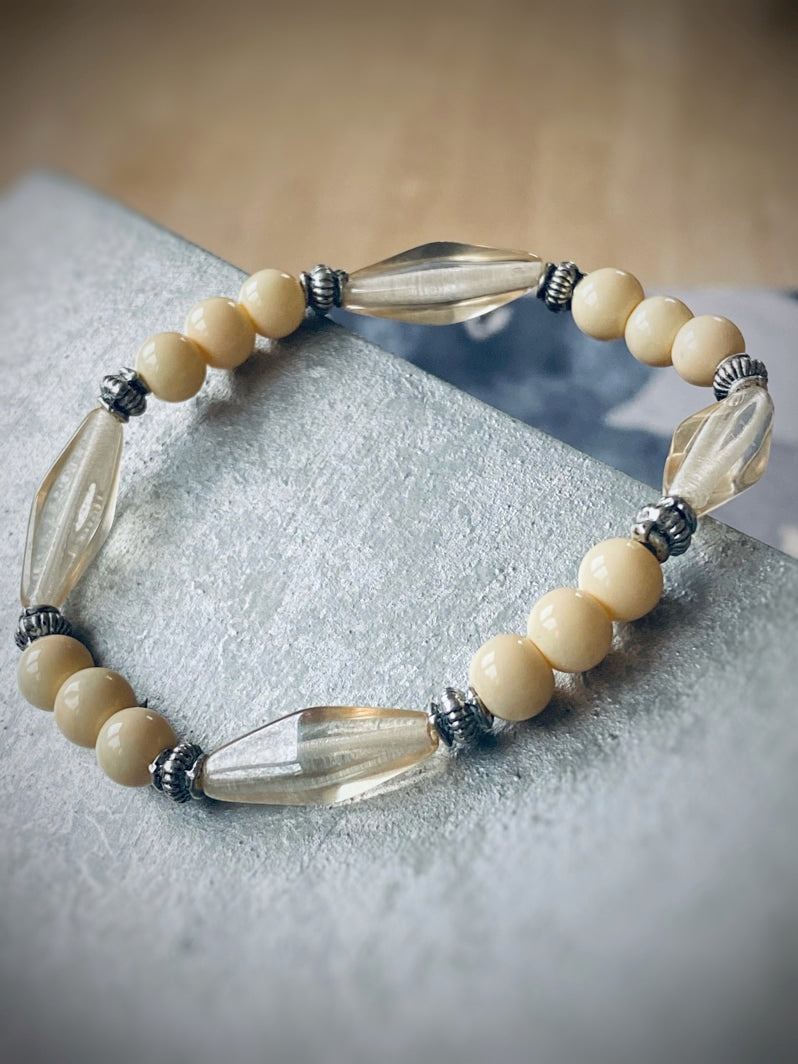 A586 - Elfenbeinfarbene Glasperlen mit Tropfen