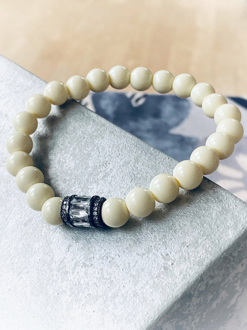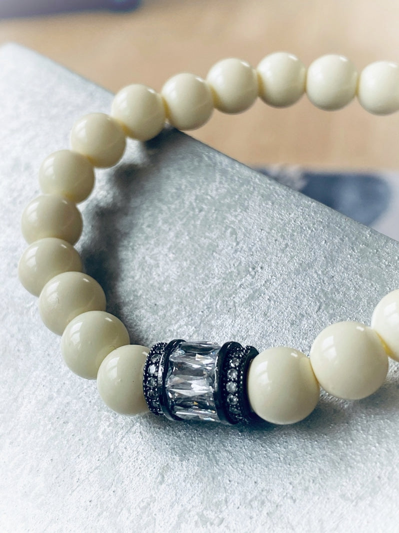 A618 - Cremefarbene Glasperlen mit Zirkon