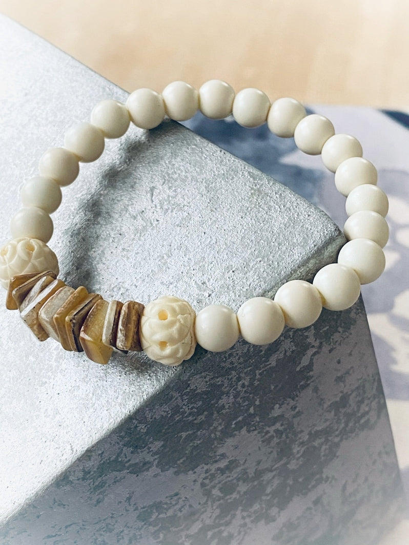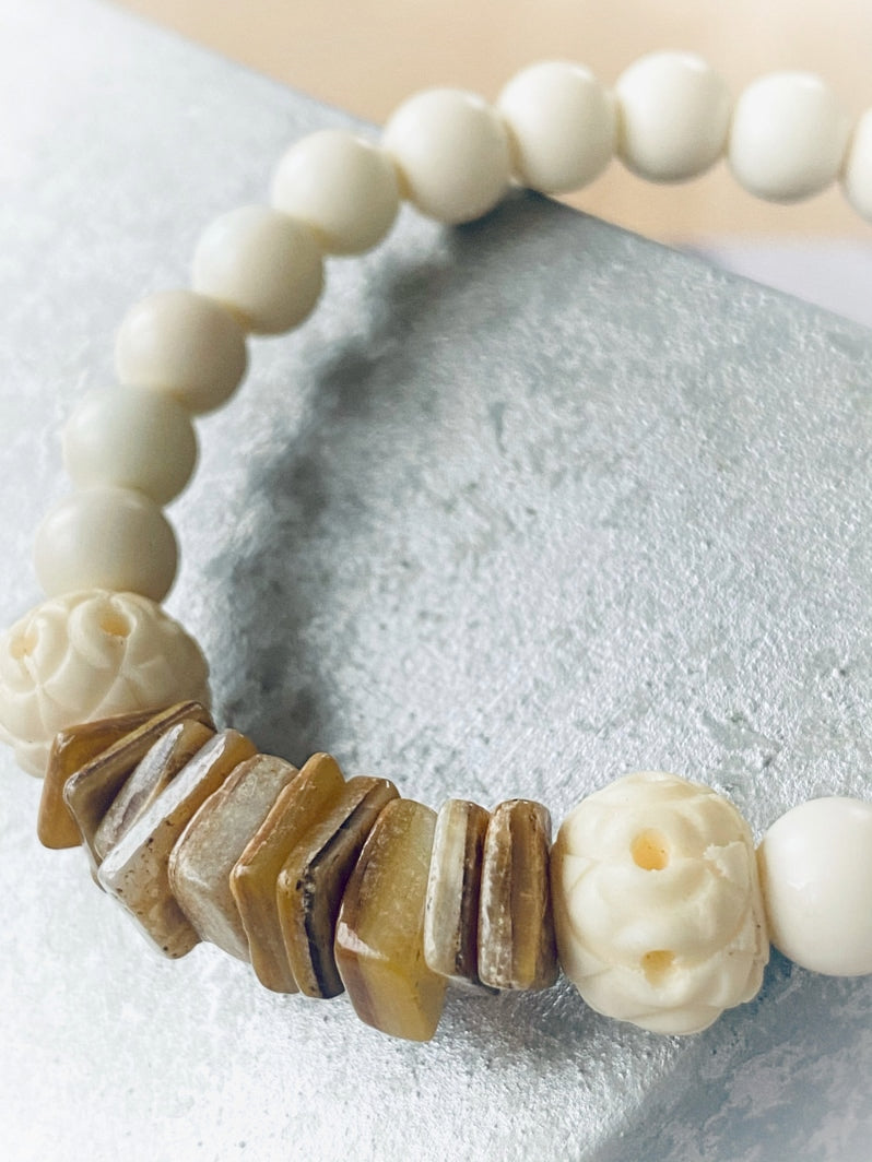 A626 - Cremefarbene Glasperlen mit Heishi-Perlen