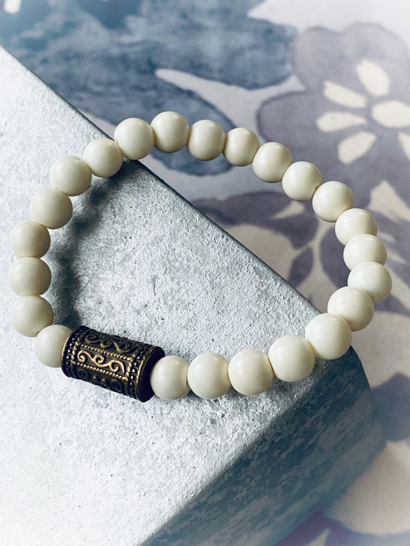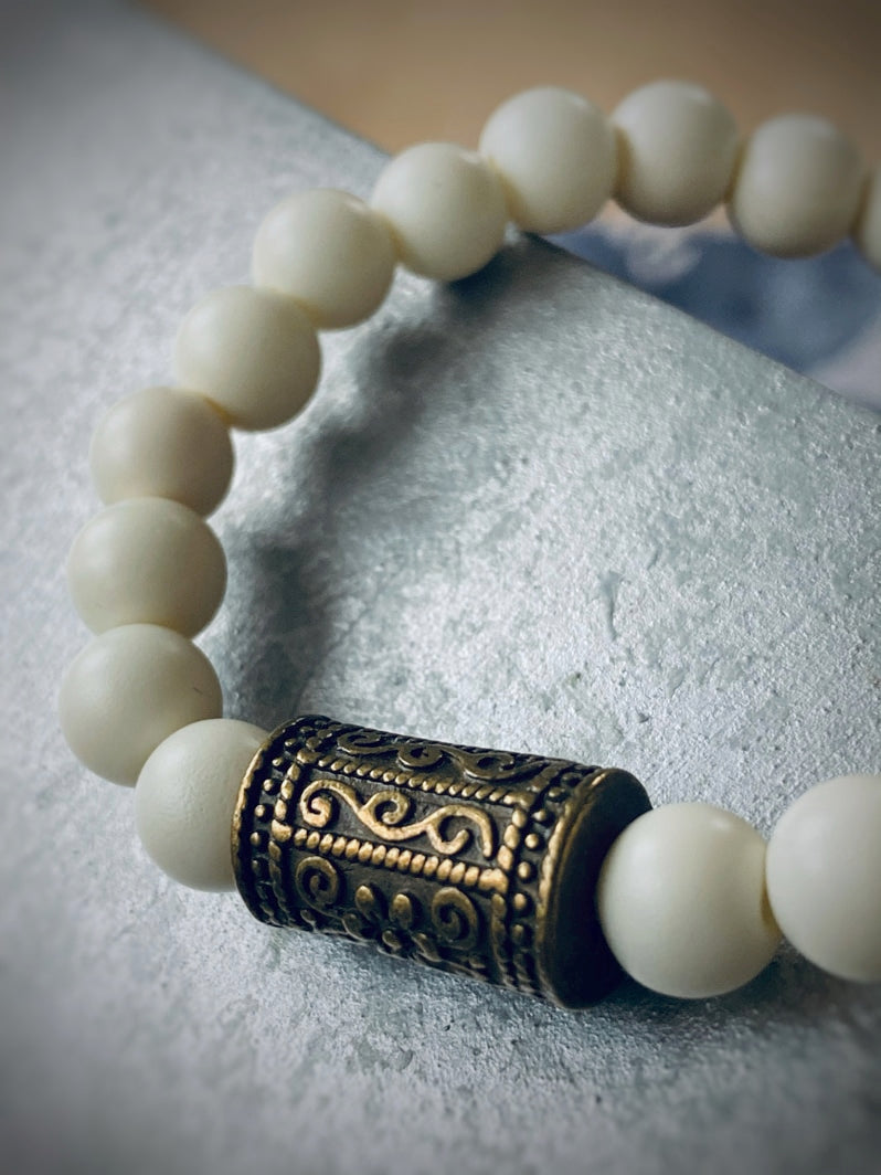 A627 - Cremefarbene Glasperlen mit Messingwalze