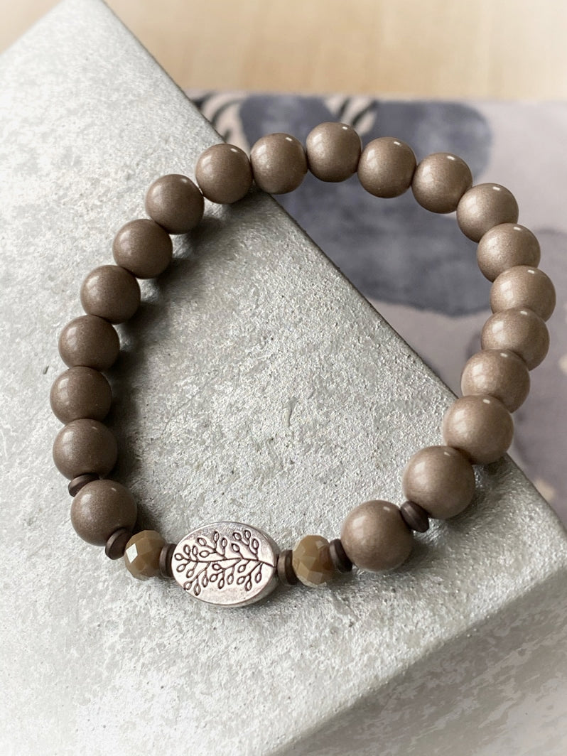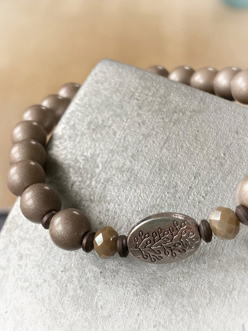 A643 - Braun-Metallic Glasperlen mit floralem Amulett
