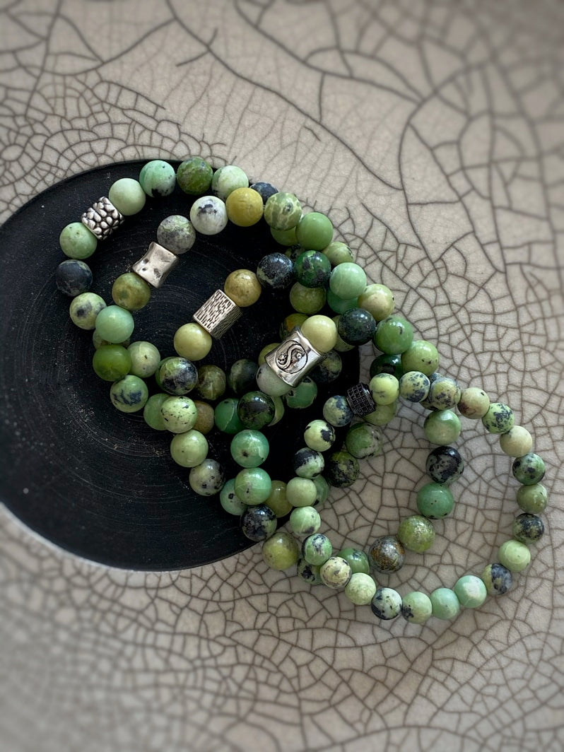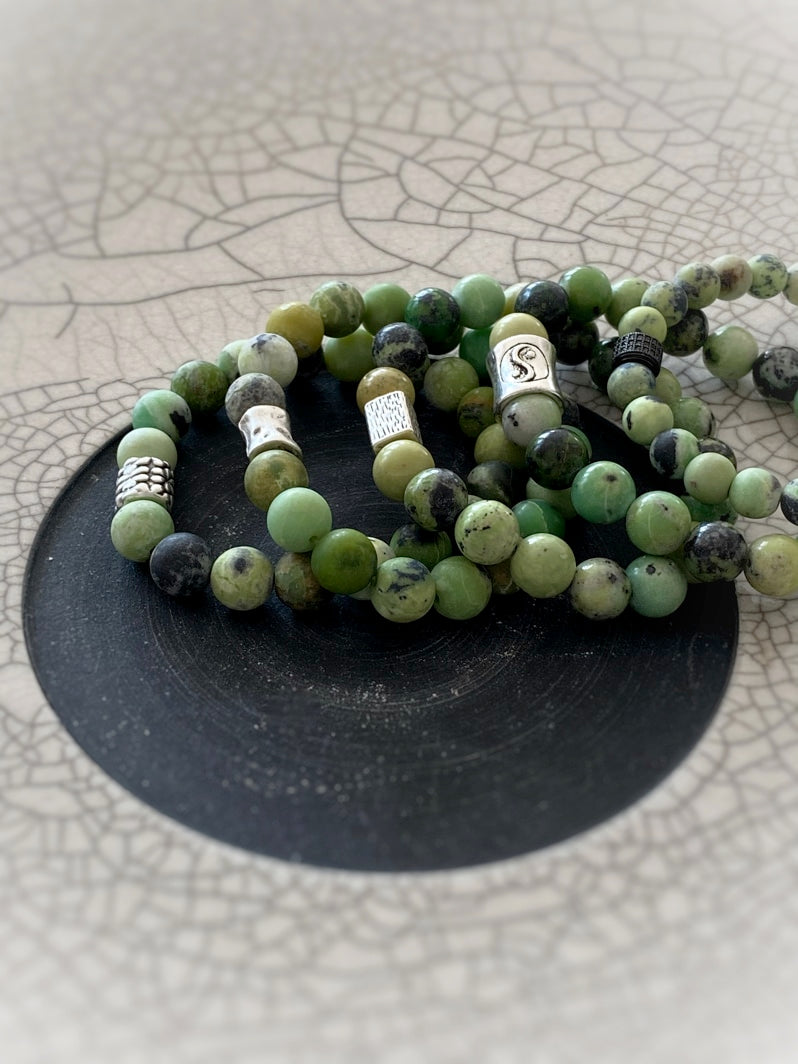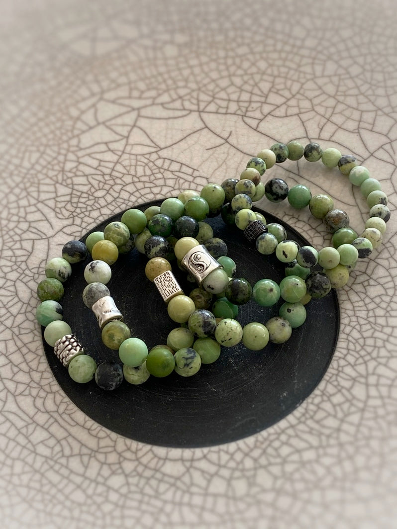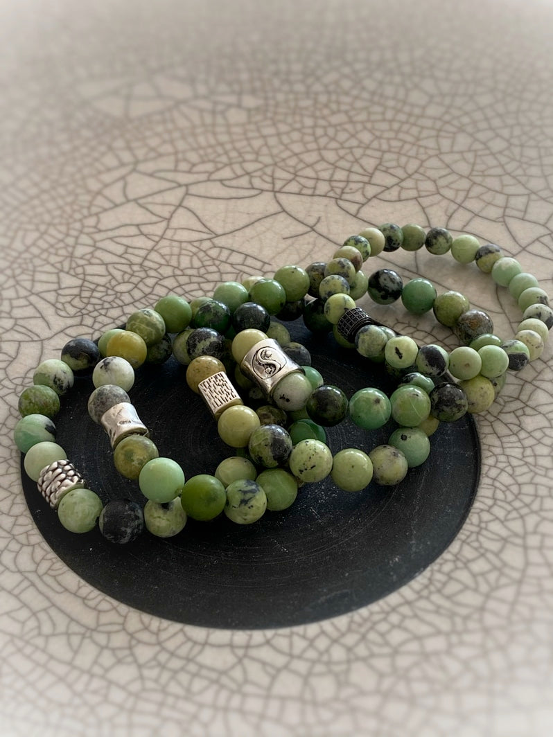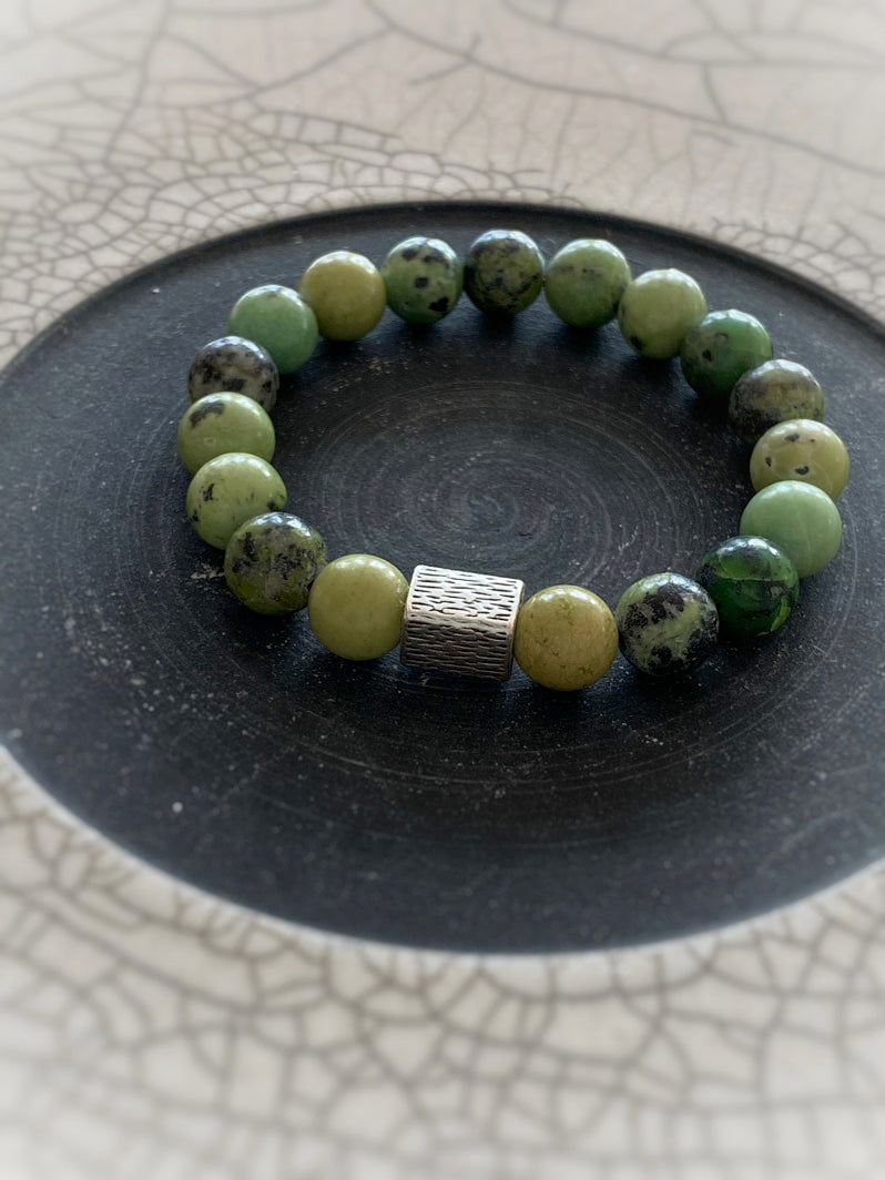 Perlen: Chrysopras 10mm mit silberfarbenem Quader