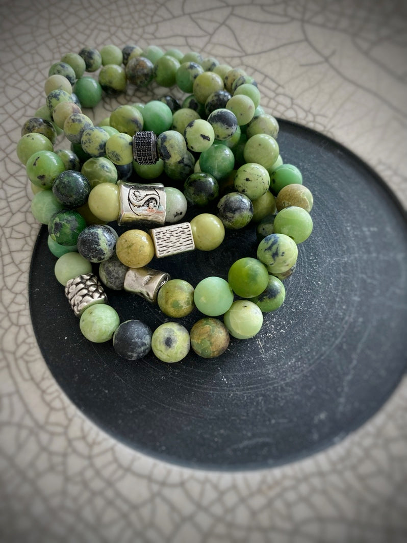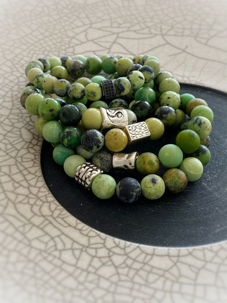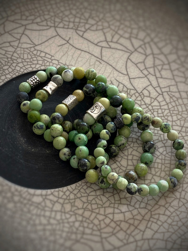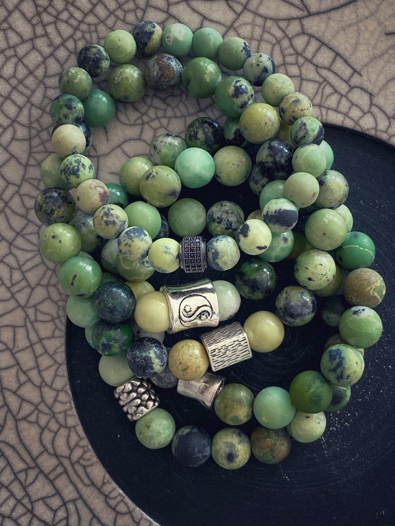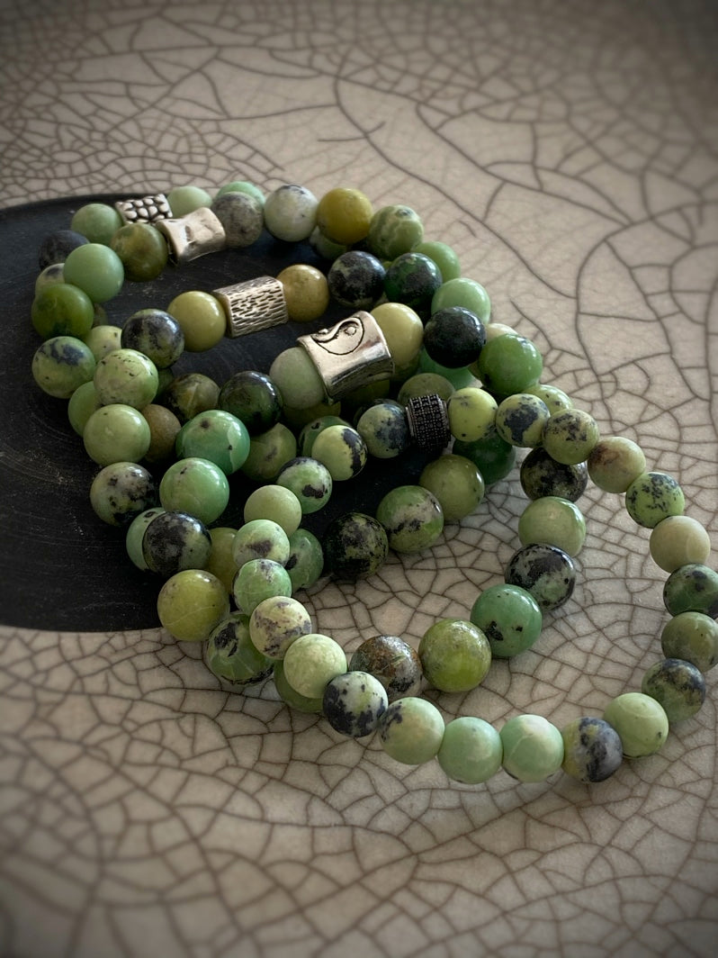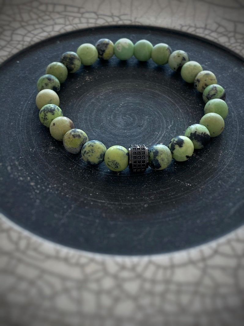 Perlen: Chrysopras matt 8 mm mit schwarzer Rolle mit Zirkonen