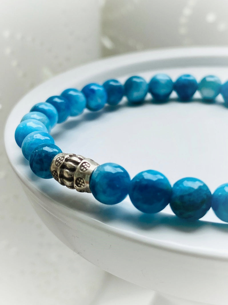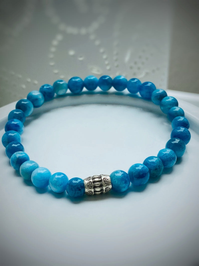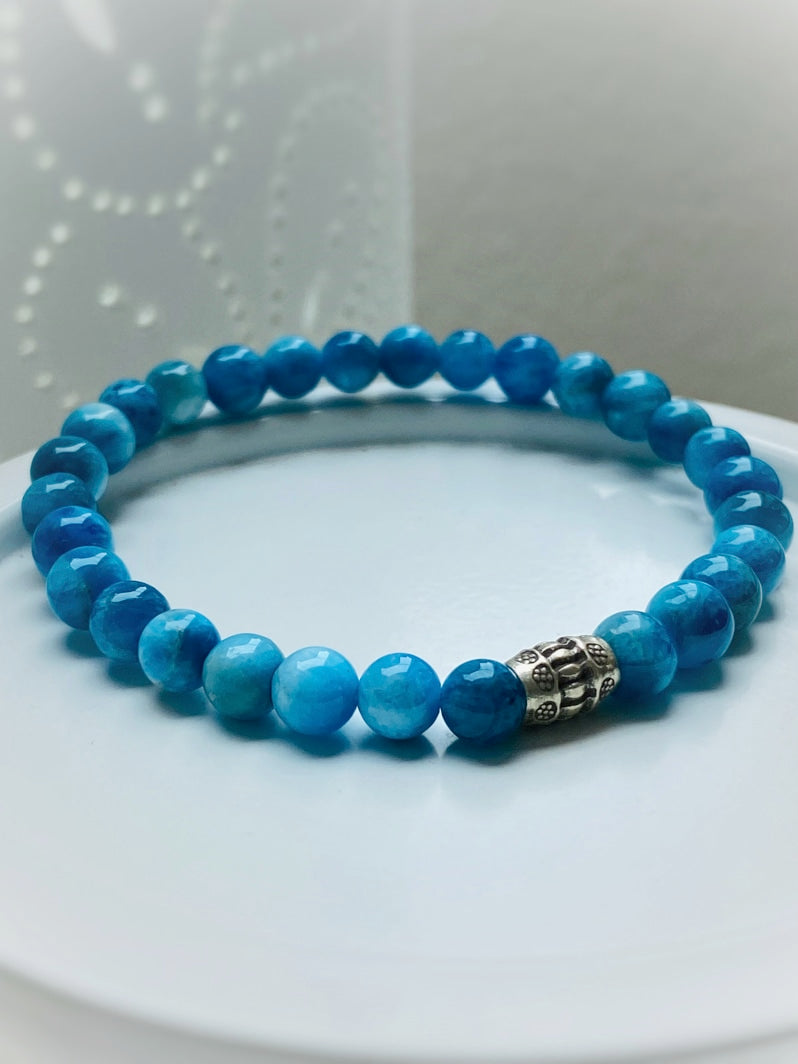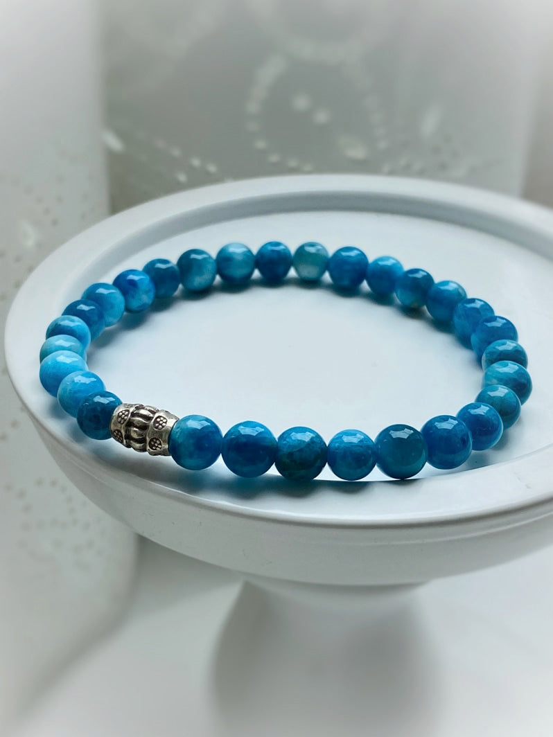 Perlen: Apatit-Perlen 6mm und handgearbeitete thailändische Silber-Rolle