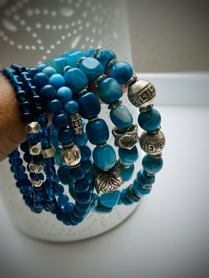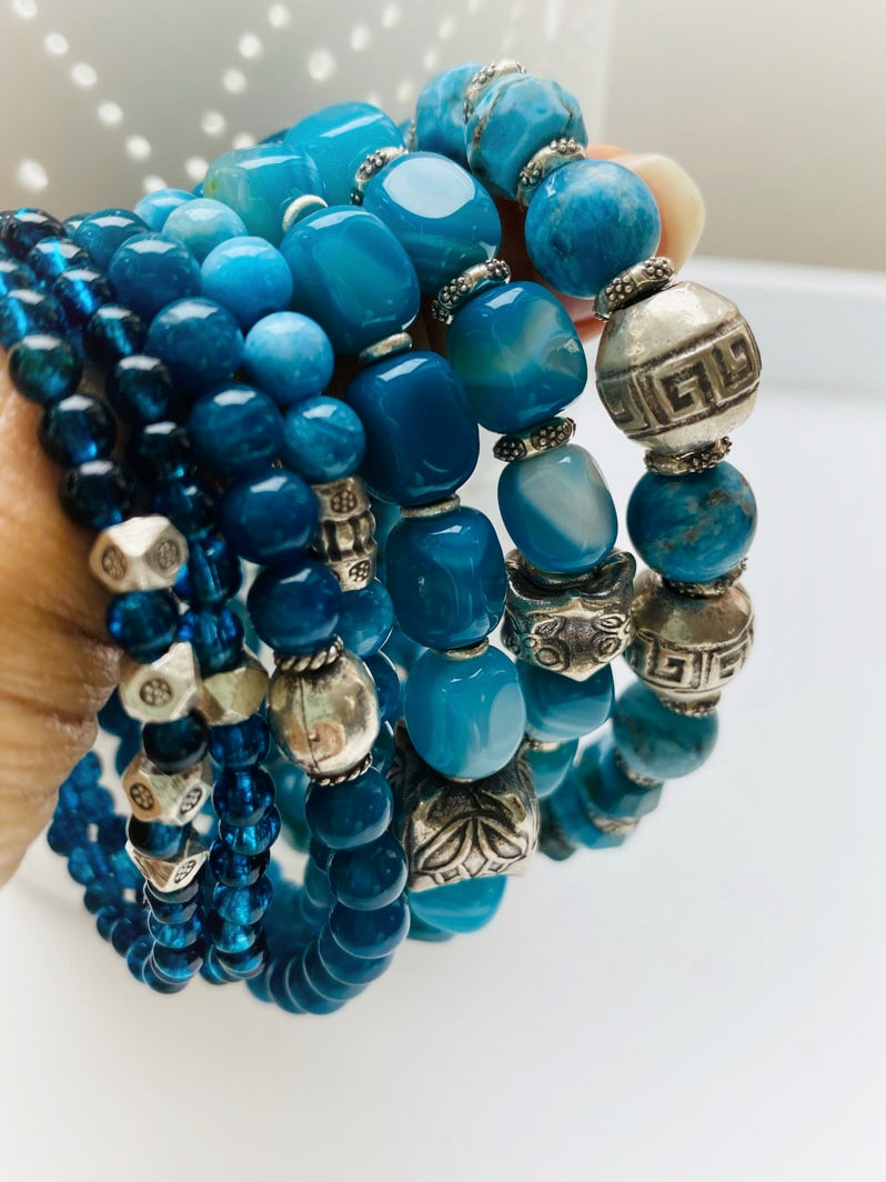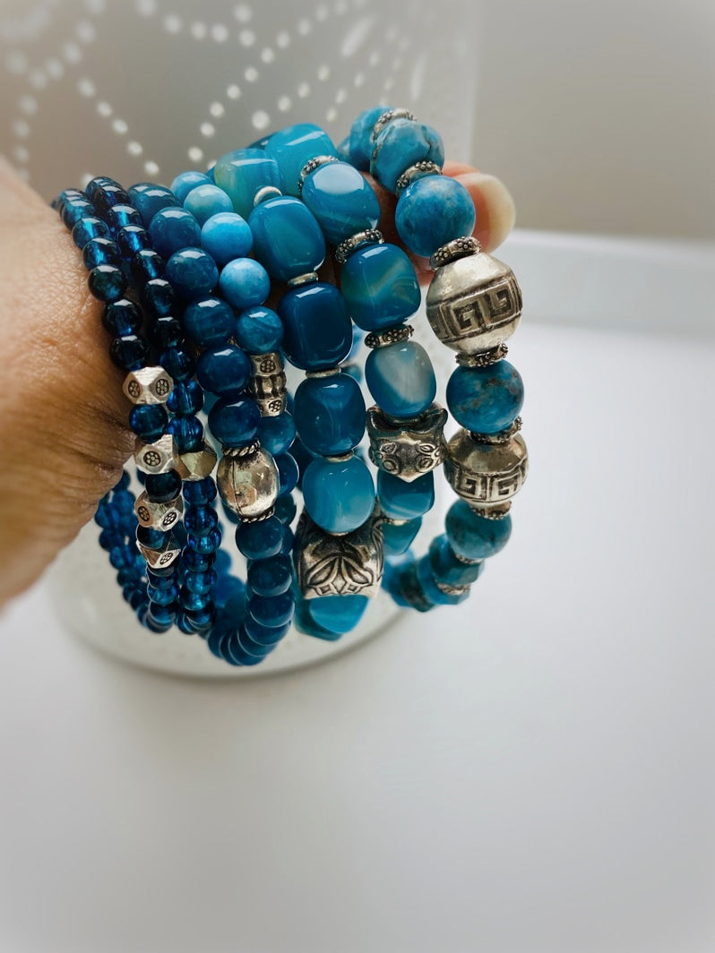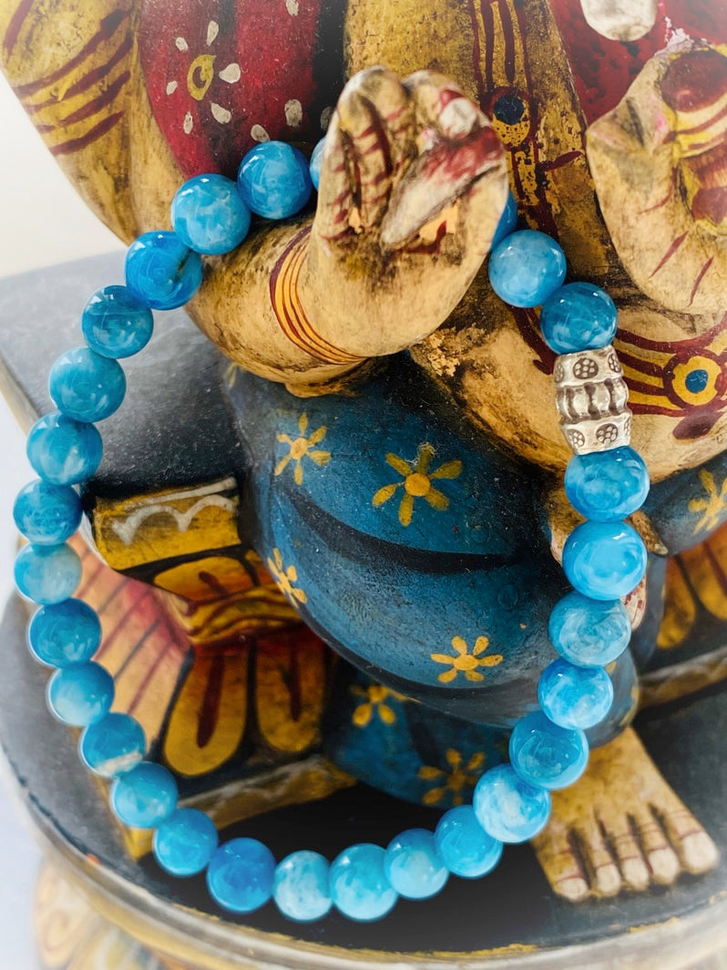 Perlen: Apatit-Perlen 6mm und handgearbeitete thailändische Silber-Rolle