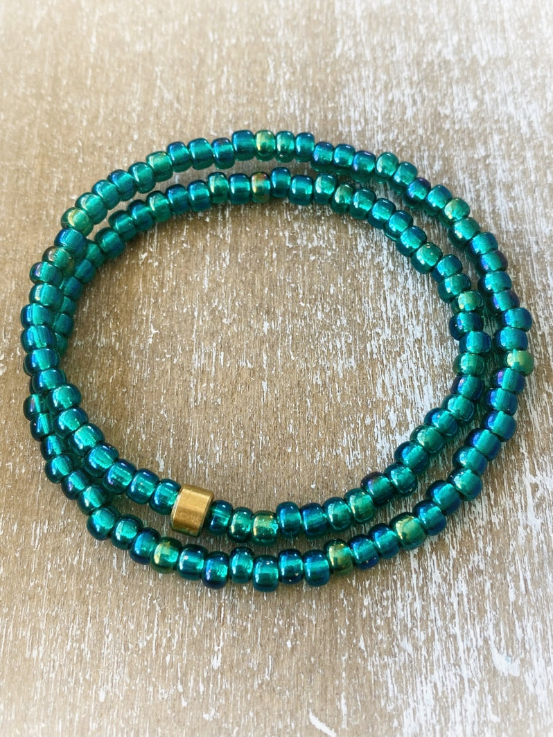 Wickelarmband silverlined teal Rocailles M6-2425 mit Silberrolle