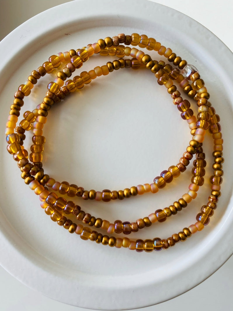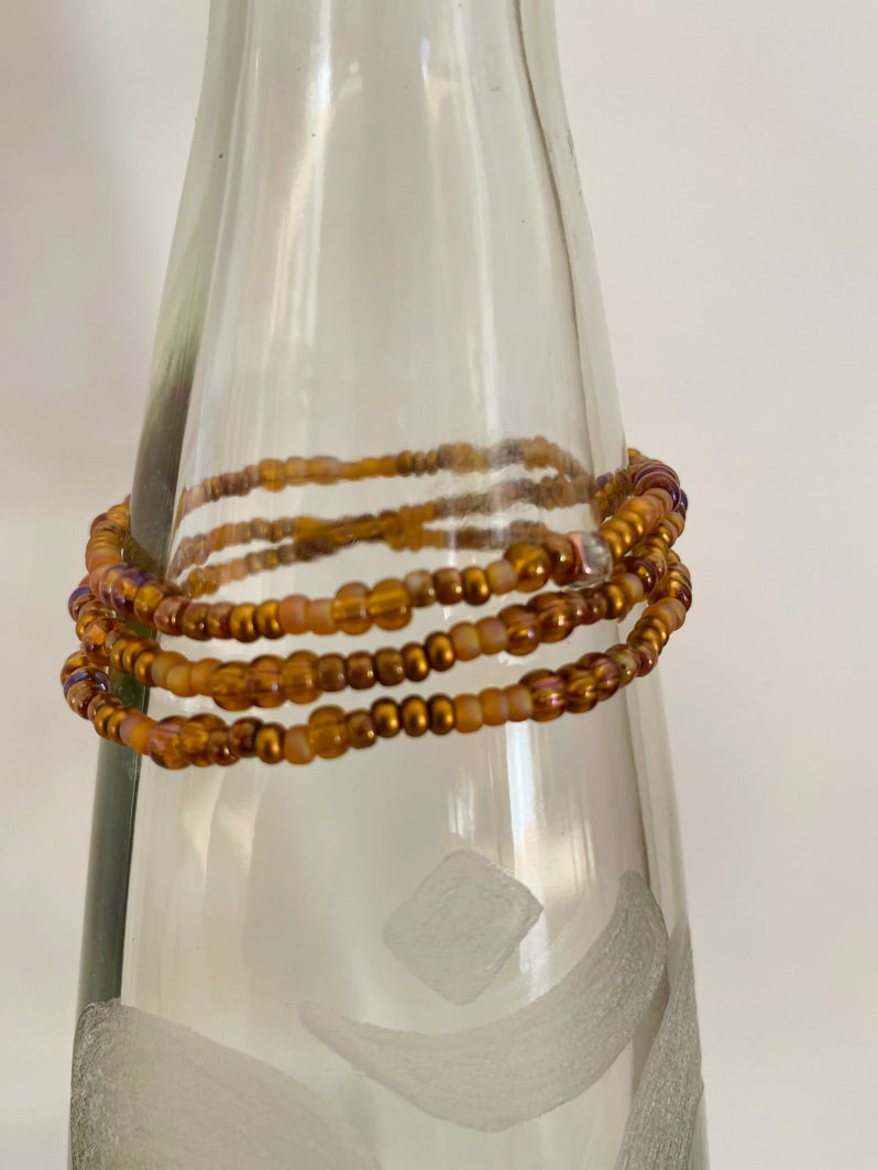 Wickelarmband mit einer Selektion schönster Rocailles-Perlchen in beigefarbenen und braunen Tönen