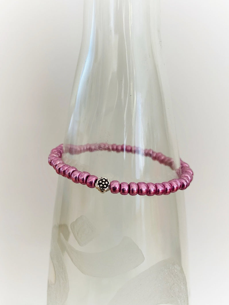 Wickelarmband mit japanischen Rocailles galvanized dusty orchid mit silberfarbenem Lotus