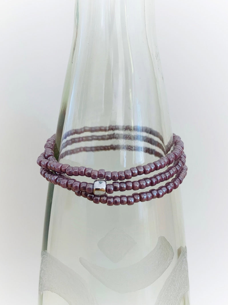 Wickelarmband mit böhmischen Rocailles violett metallic mit Silberwürfel