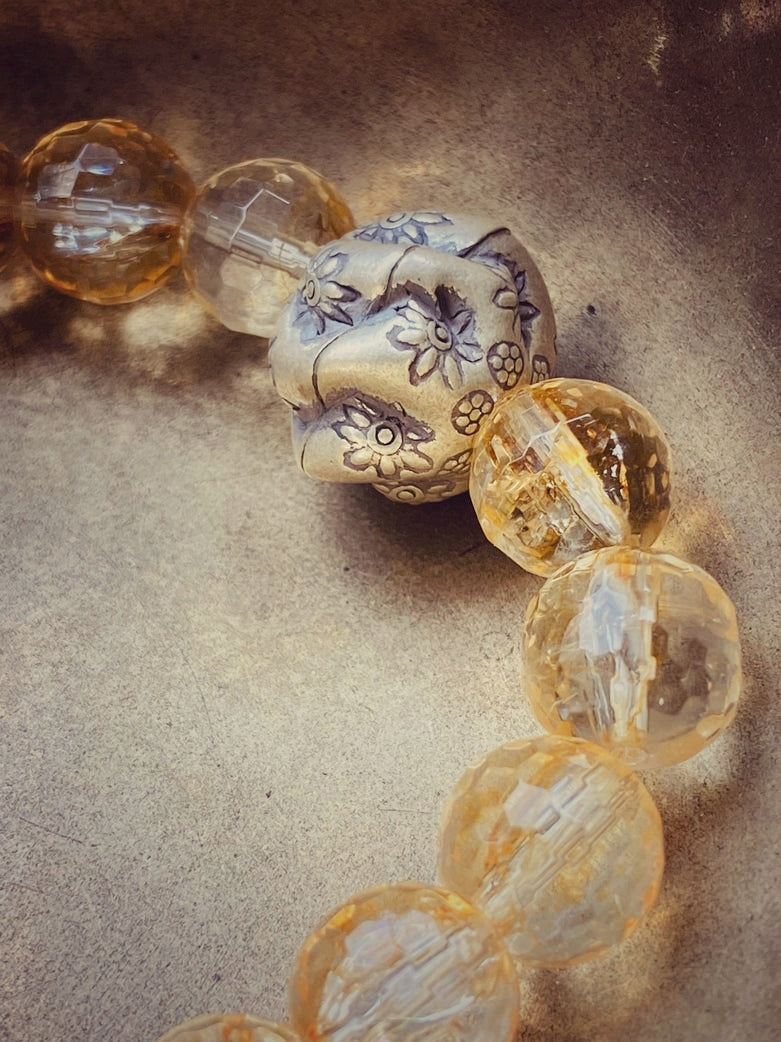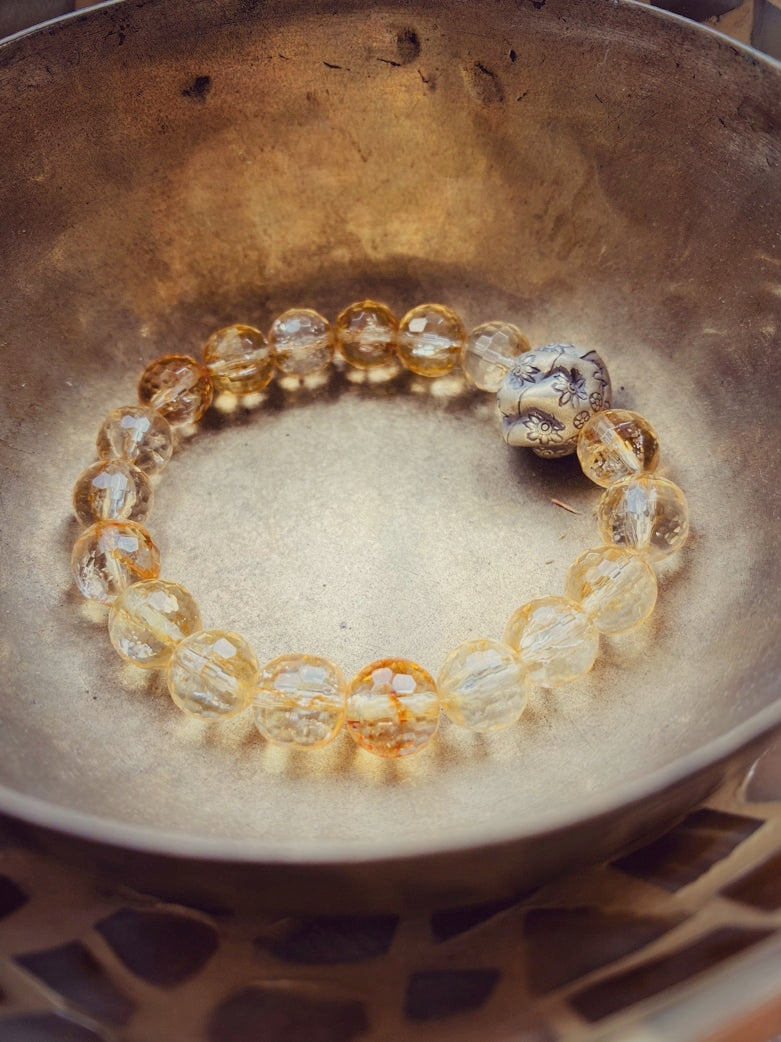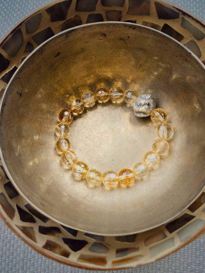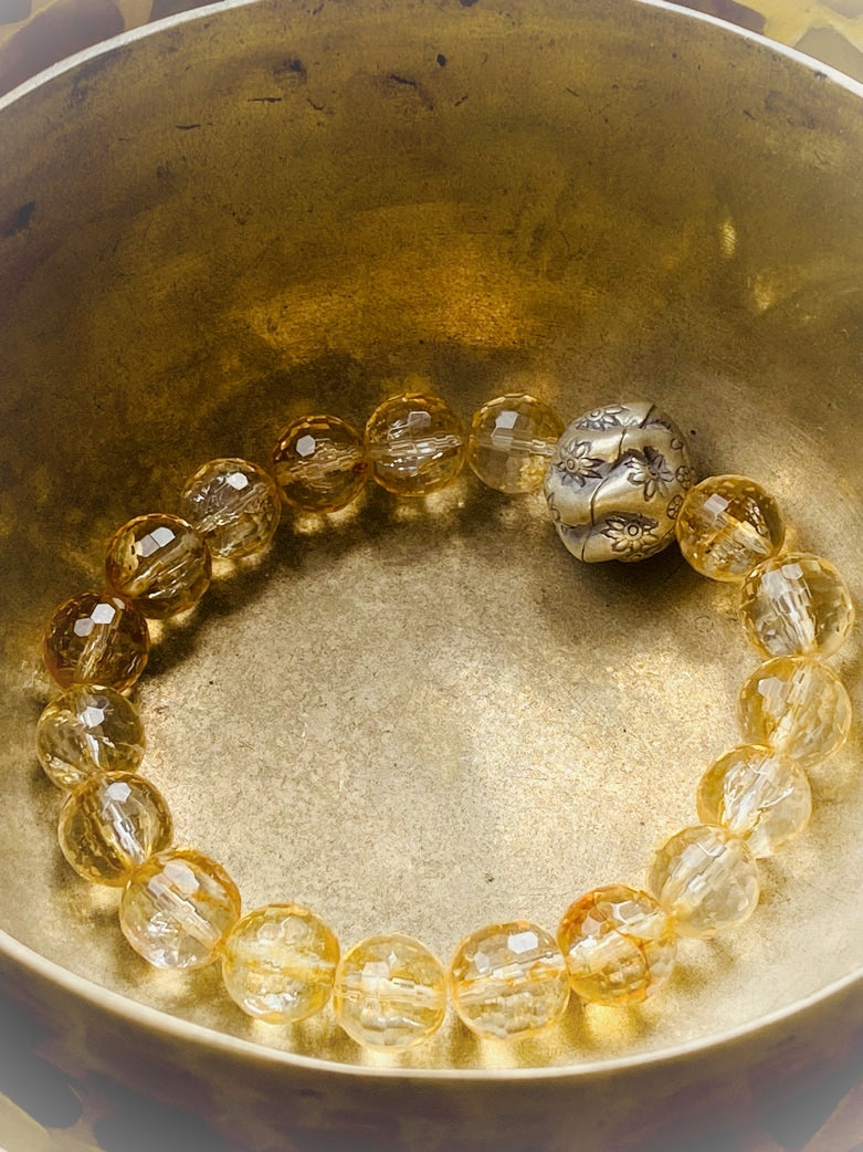 Perlen: Facettierter Citrin, 10 mm, Silberperle aus Thailand handgearbeitet