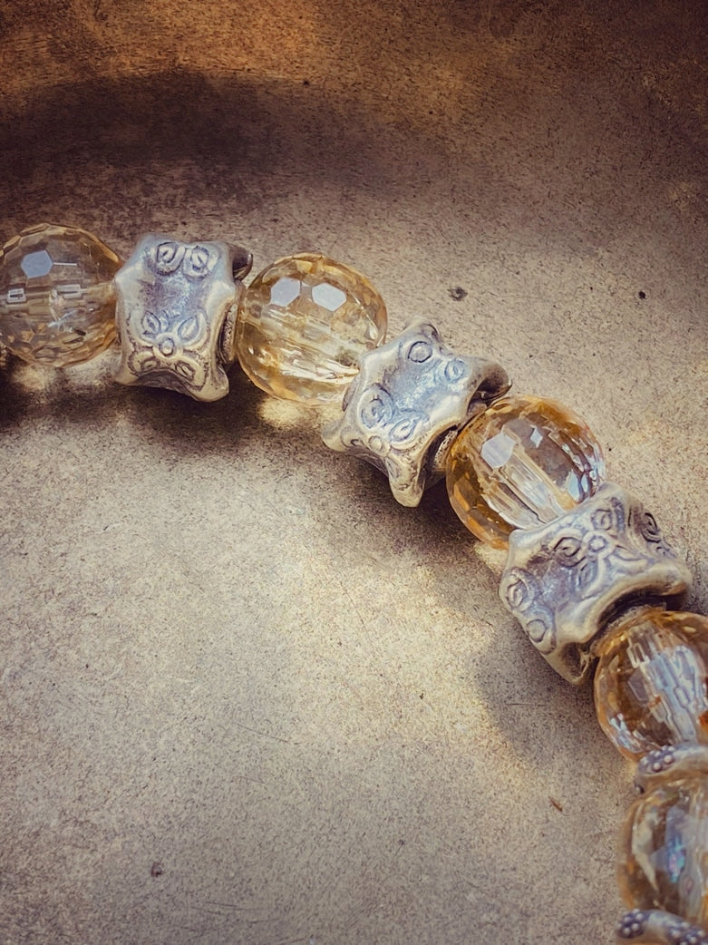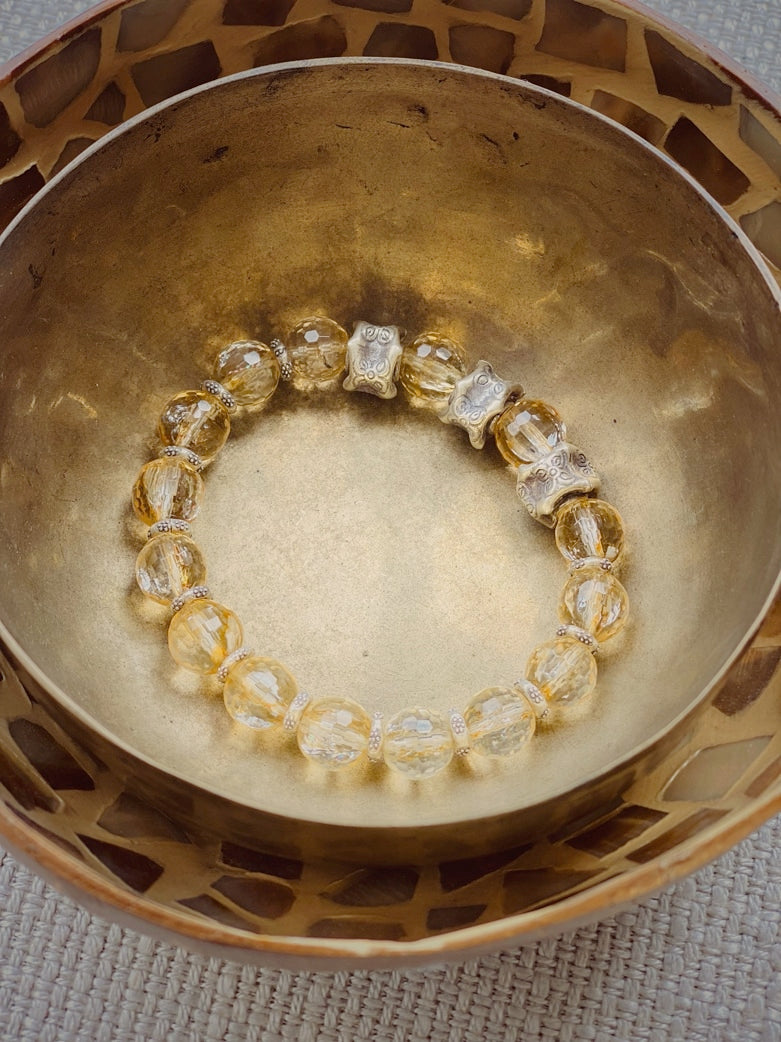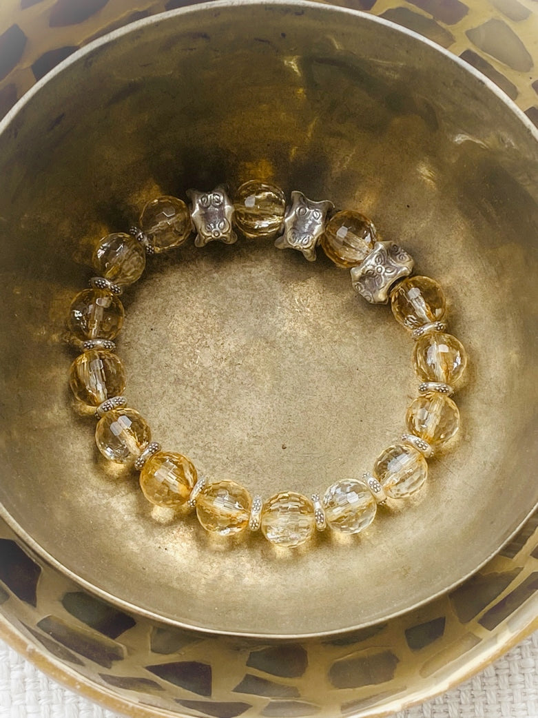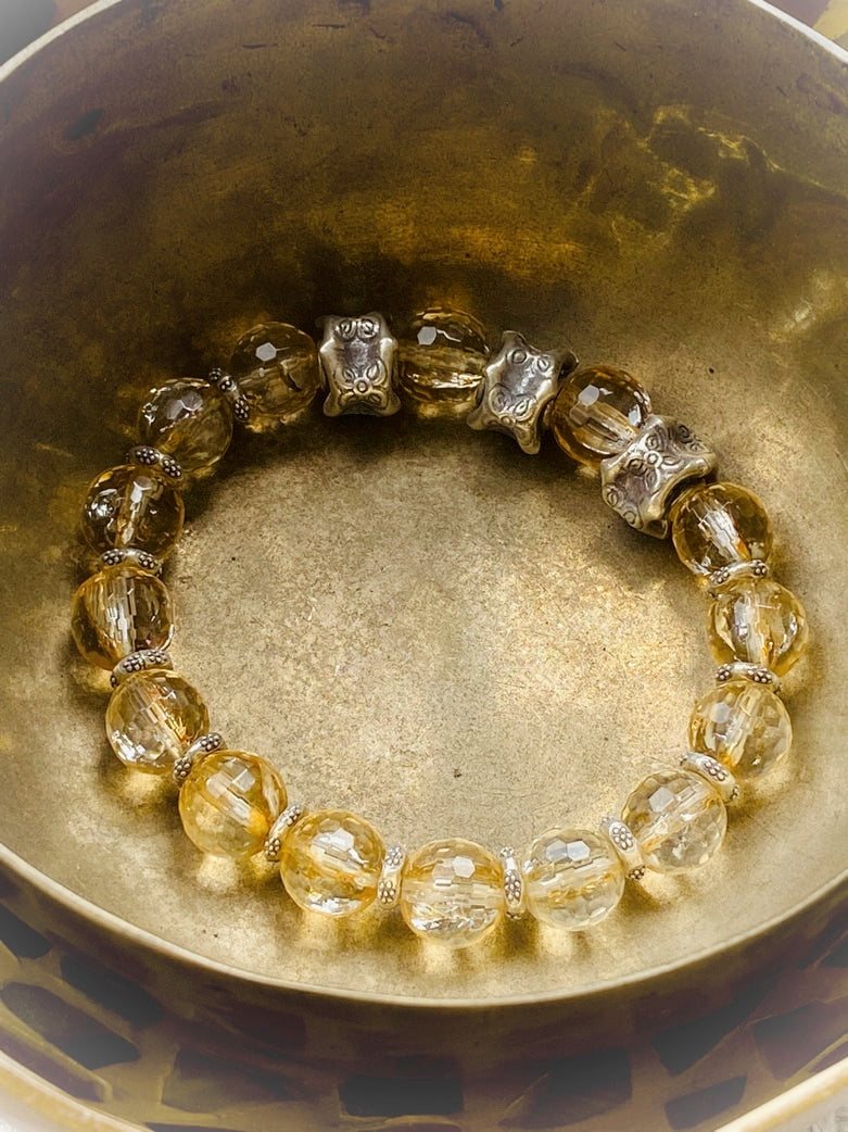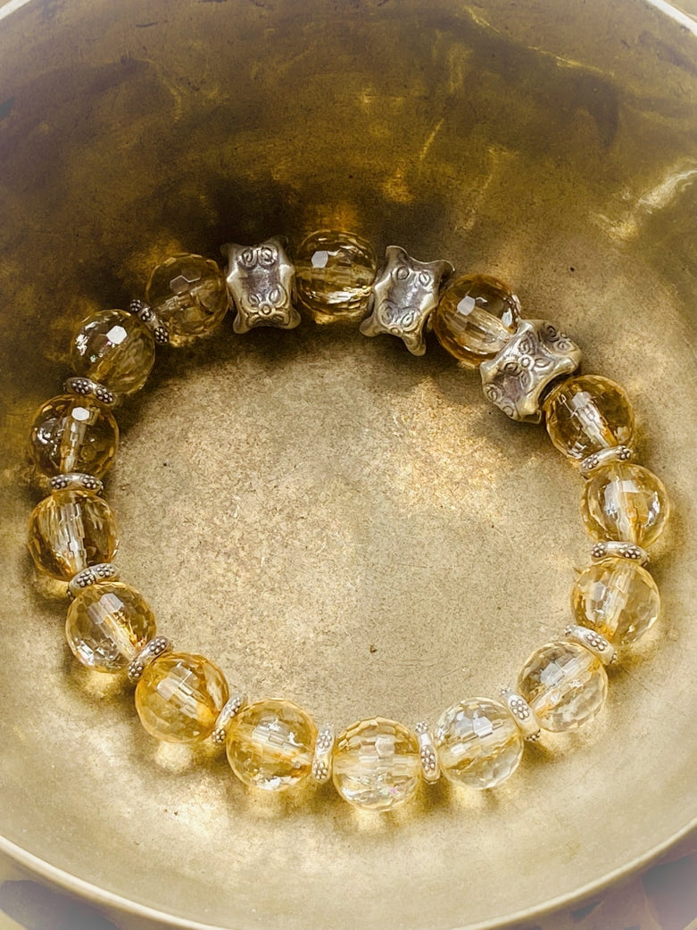 Perlen: Facettierter Citrin, 10 mm, Silberringe, 3 Silberperlen aus Thailand handgearbeitet
