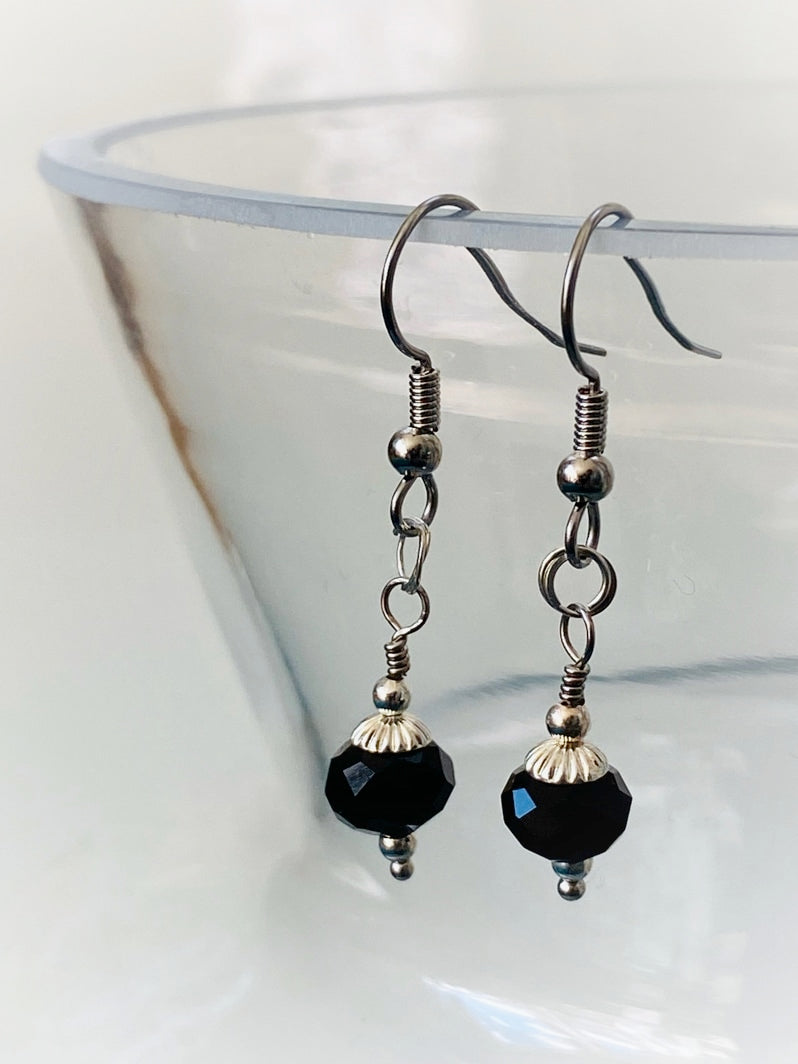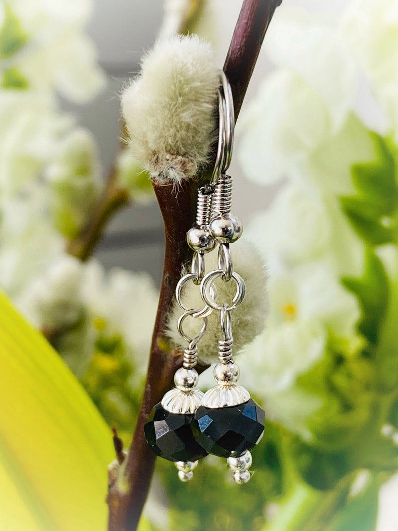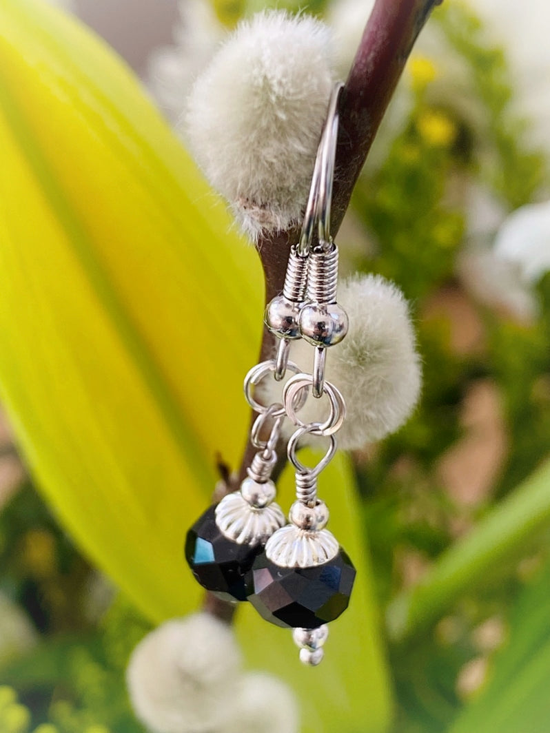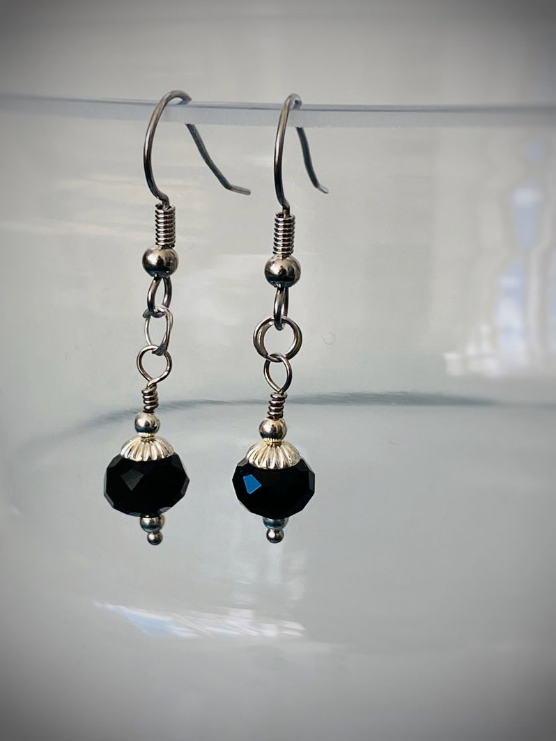 E006 - Silberohrringe mit schwarzen Glas-Perlen
